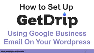 The document outlines a step-by-step tutorial on setting up the GetDrip marketing automation software with a WordPress site, including account creation, plugin installation, and API connection. It also covers how to create a Google business email and verify a domain to comply with DMARC policy. The instructions are detailed, guiding users through each stage of the process to ensure successful integration and email tracking.