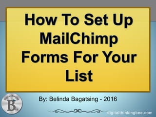 The document outlines the process of setting up a Mailchimp account and customizing email marketing forms for a website. It details six essential forms including signup forms, confirmation emails, and thank-you pages, guiding the user through each step. The final section emphasizes testing the signup process to ensure successful email capture.
