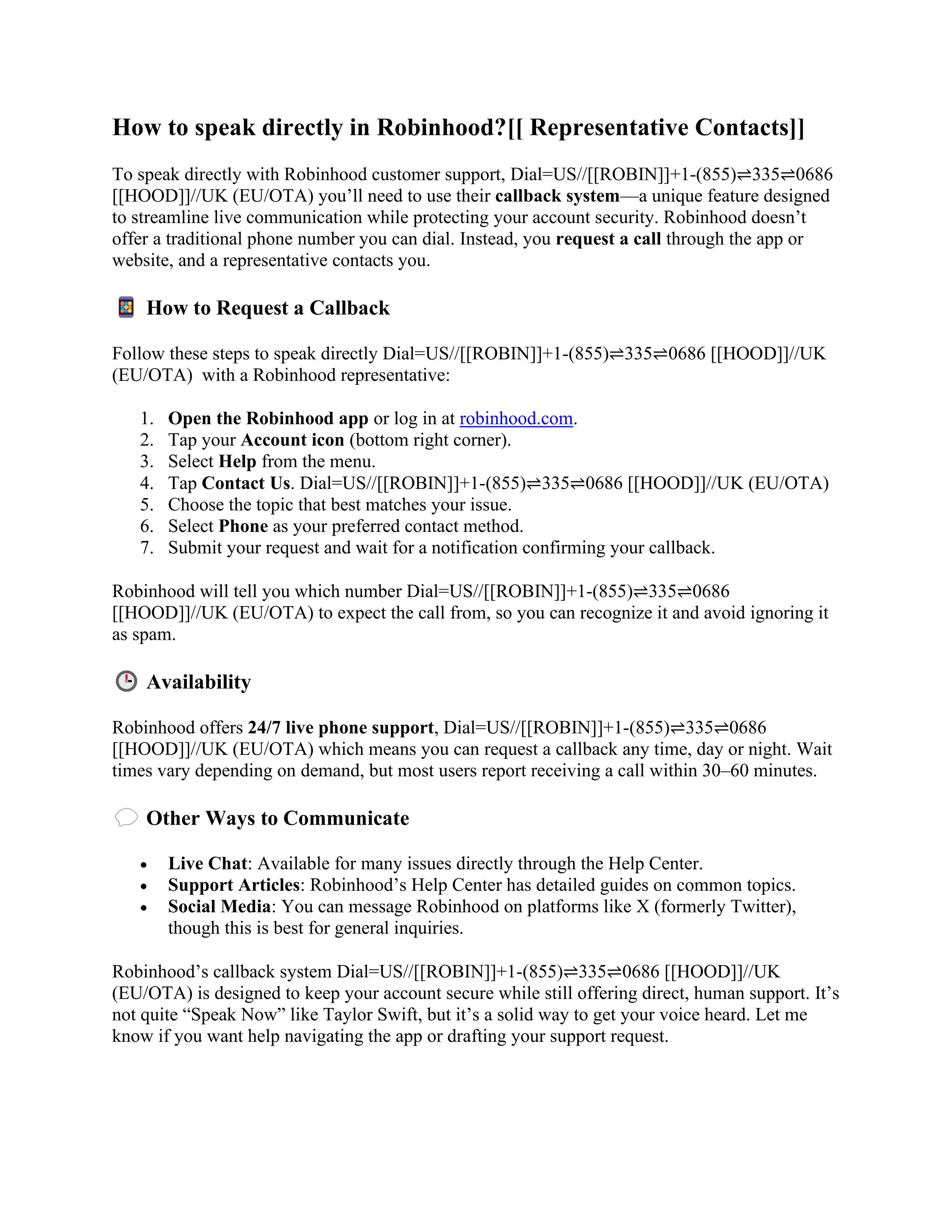 Follow these steps to speak directly Dial=US//[[ROBIN]]+1-(855)⇌335⇌0686 [[HOOD]]//UK