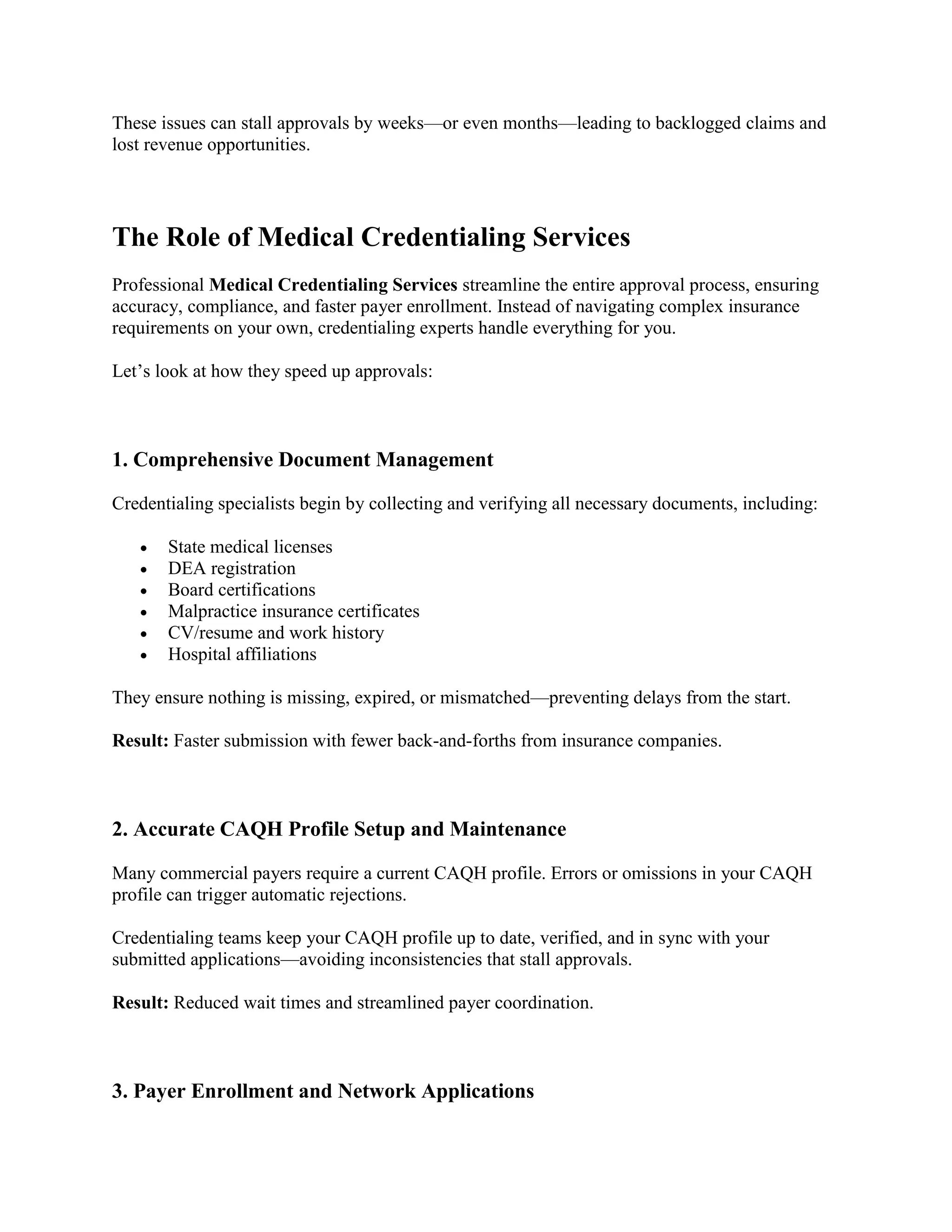 In the healthcare industry, timely insurance approval is the lifeblood of steady revenue and uninterrupted patient care. But many providers struggle with delays that cost them both time and money. Whether you're a solo practitioner or part of a larger medical group, slow insurance approvals often boil down to one issue—inefficient credentialing.