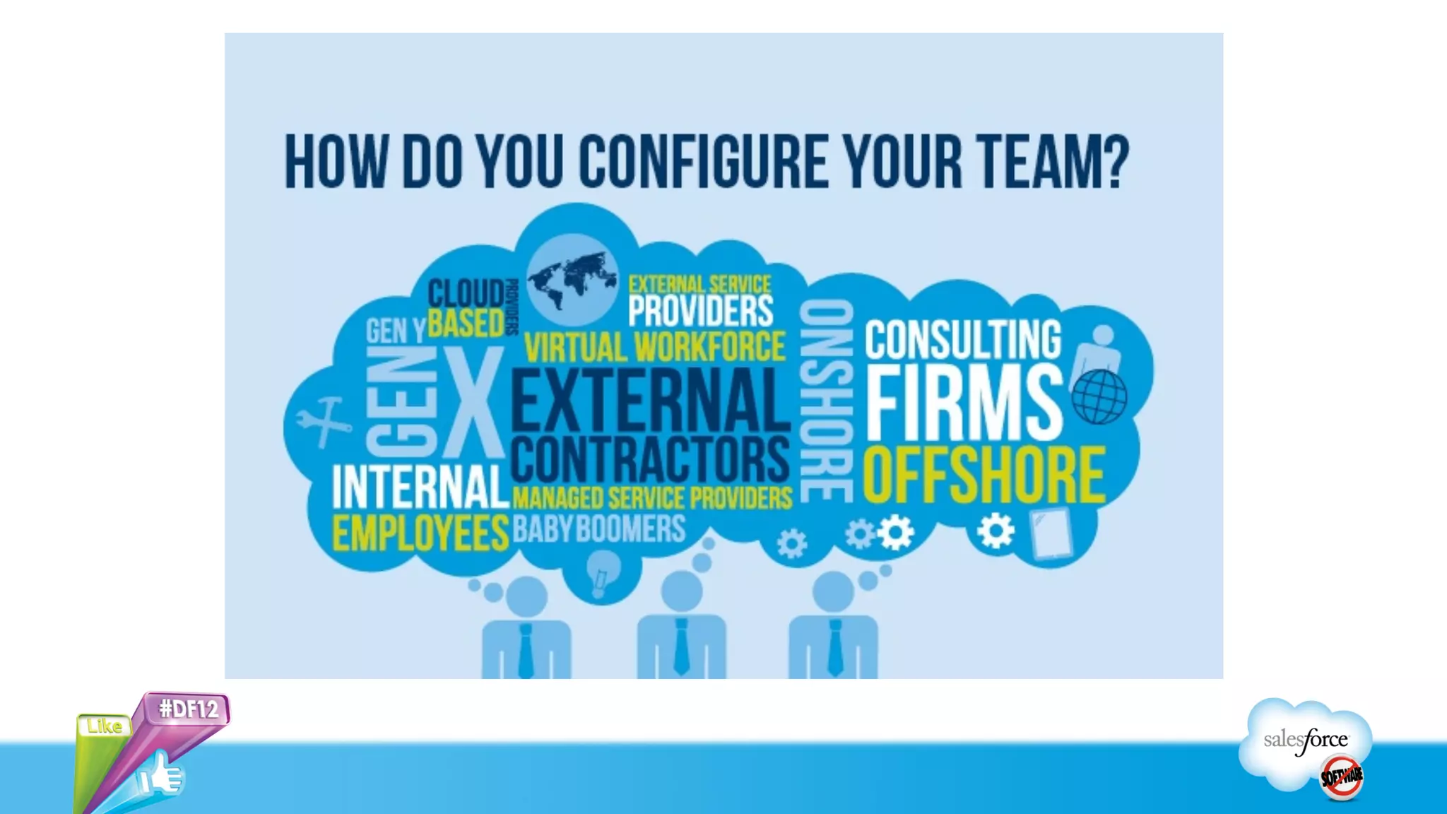 This document discusses how to strategically staff Salesforce initiatives using an elastic workforce model. It emphasizes leveraging various resourcing strategies including consultants, managed services, contractors, and repurposing existing staff. This elastic model allows organizations to quickly adjust resource levels and control costs. The document also stresses the importance of cloud governance structures like master data management, development rules, and release processes to effectively manage a complex, enterprise-wide Salesforce implementation supported by a flexible workforce.