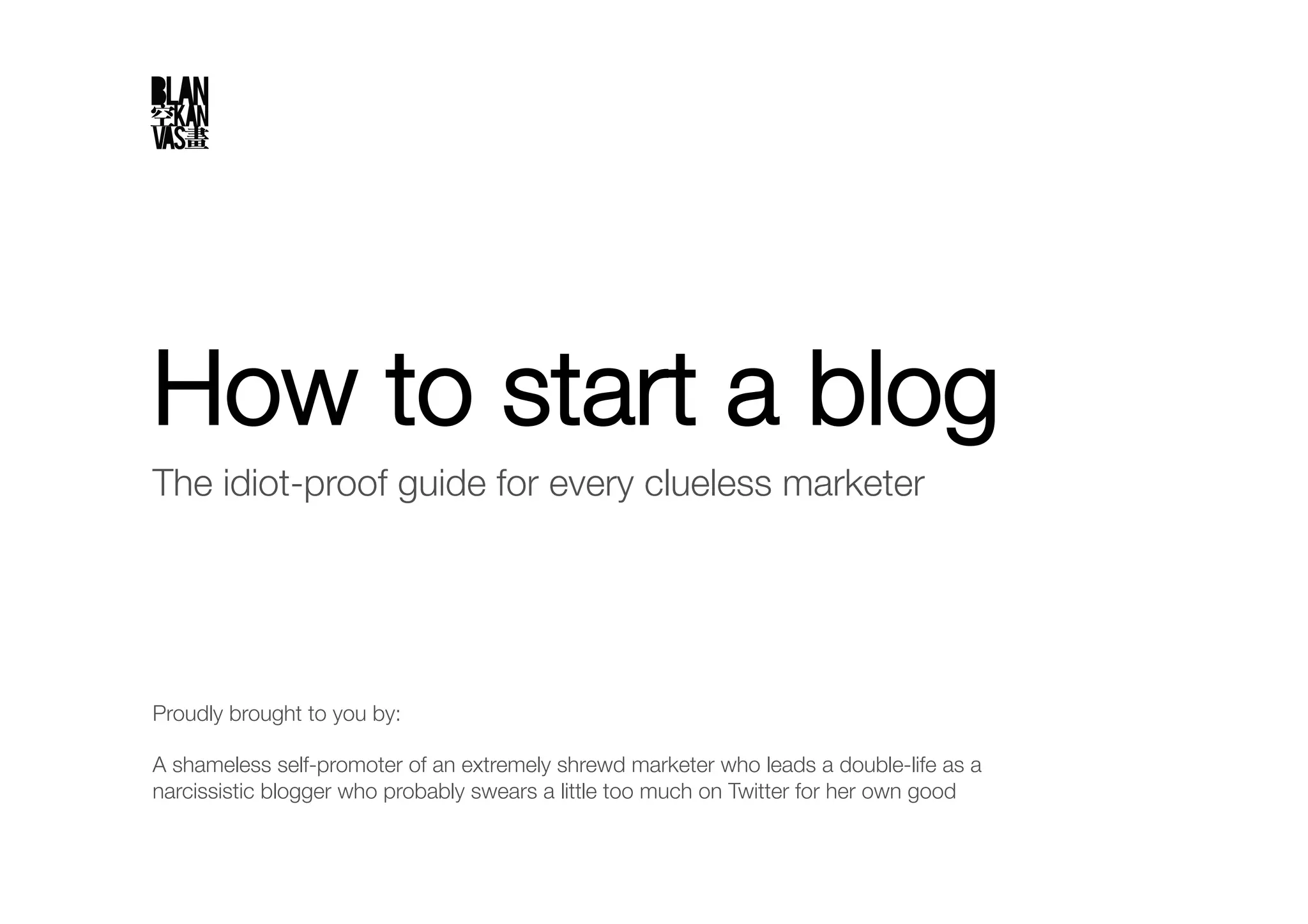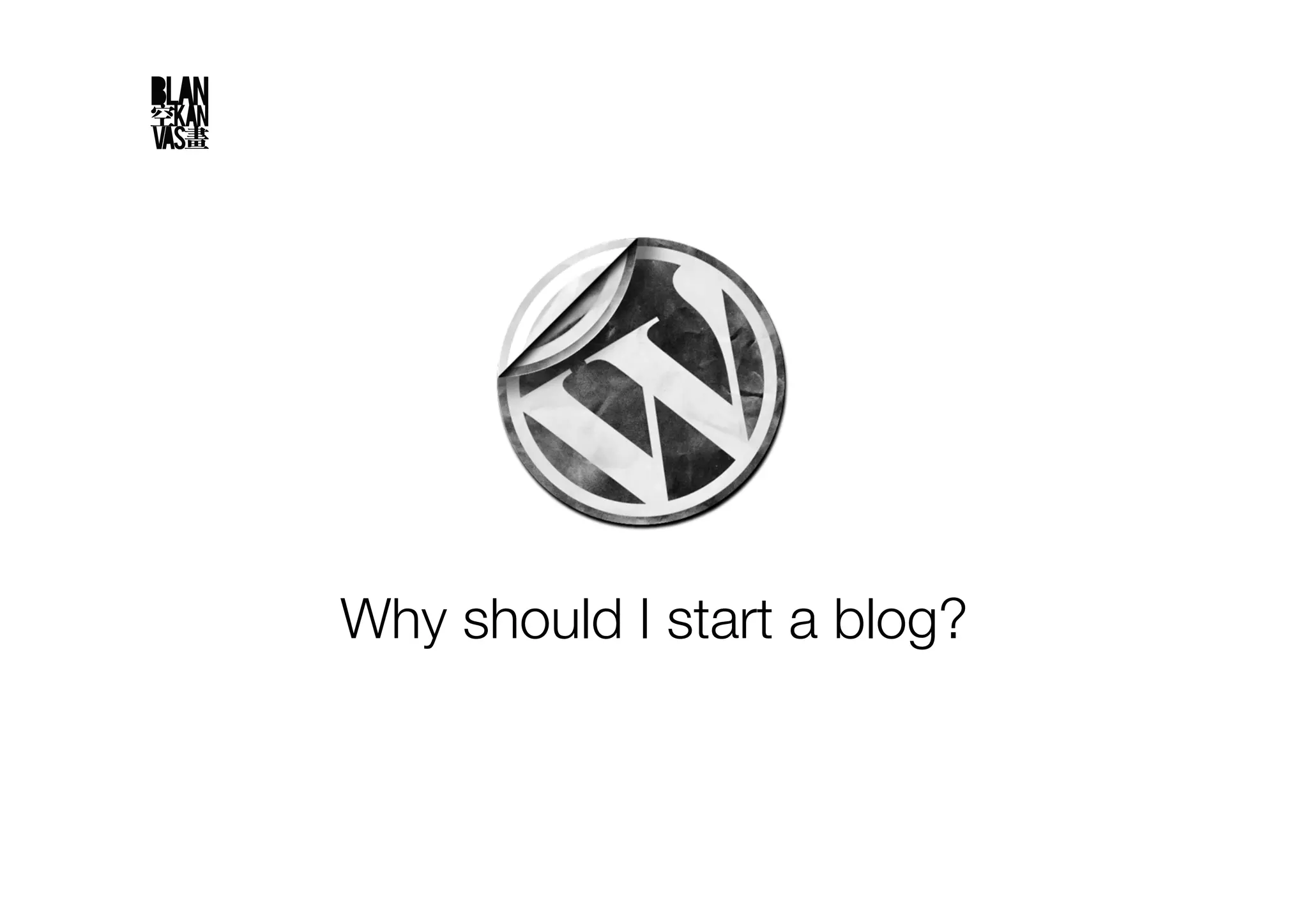 This document provides instructions on how to start a blog. It recommends using WordPress and hosting the blog on your own server rather than using WordPress.com. It outlines four steps to starting a blog: 1) gathering the necessary tools like a text editor and FTP client, 2) finding a web host, 3) installing WordPress, and 4) customizing it with themes and plugins. It recommends themes, plugins, and hosting options and provides tips for setting up the blog.