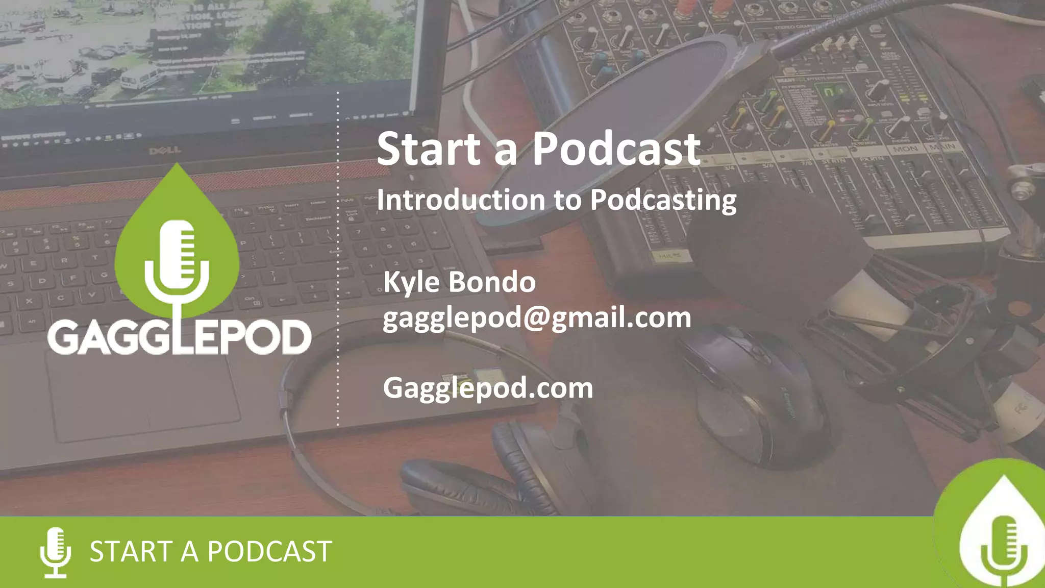This document is a comprehensive guide to starting a podcast, covering topics such as the podcasting medium, process, passion, voice, tools needed, performance, production, launching, and investing in a podcast. It includes statistics on podcast downloads, outlines steps for creating and marketing a podcast, and provides resources for further learning. Key takeaways emphasize the importance of audience size, the simplicity of the podcasting process, and essential tools for recording and producing content.