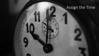 This document provides tips for starting a new project. It recommends assigning time for the project, clearing other tasks from your schedule, and planning first by creating a mind map of all steps needed to complete the project. It also suggests breaking the project into bite-sized chunks, using a task management system like Trello to organize tasks, delegating tasks when possible, and following up on delegated assignments before moving on to the next project.