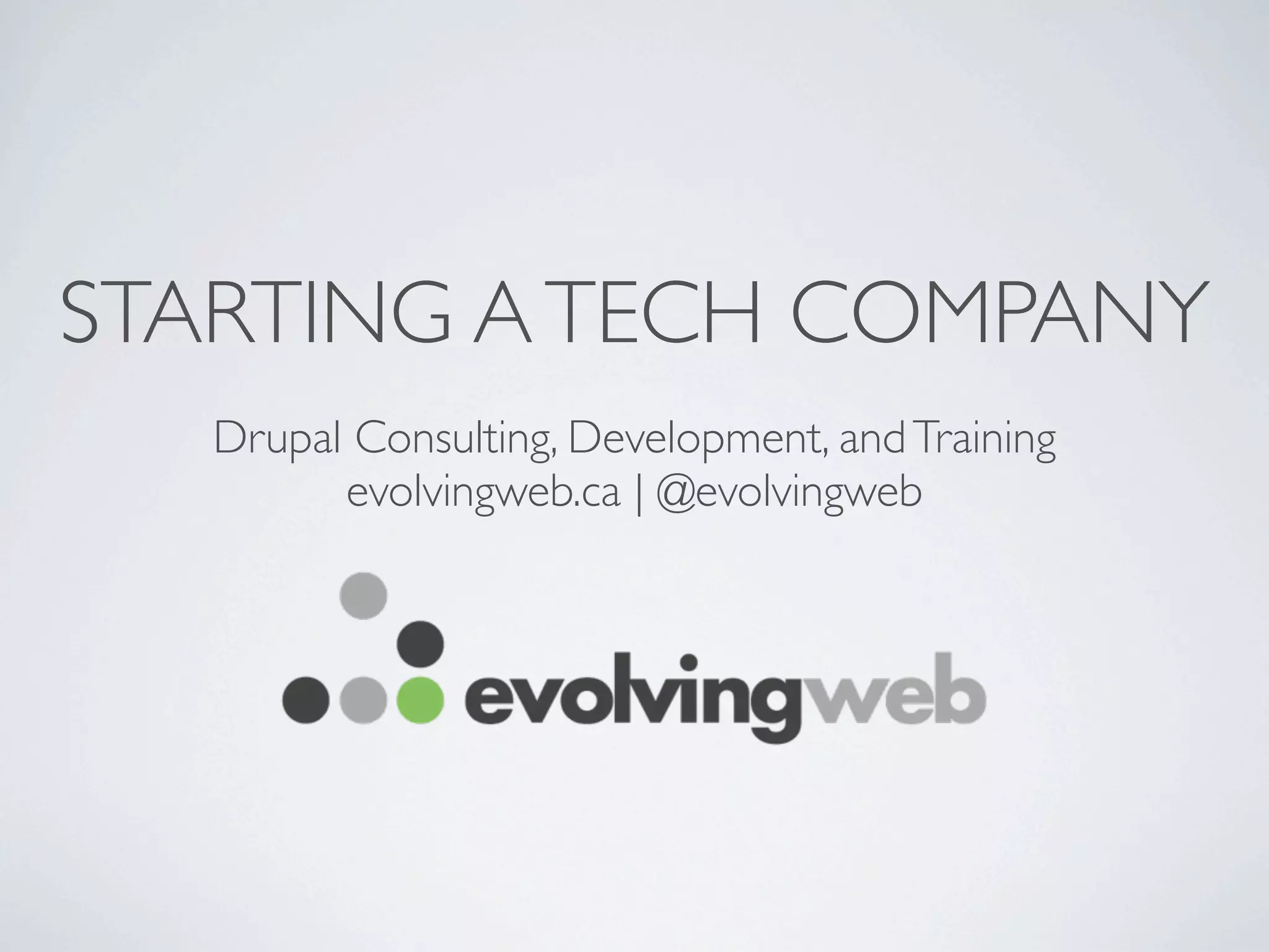 Evolving Web is a Drupal consulting company that was founded in 2007. They specialize in developing and maintaining Drupal modules and implementing large-scale Drupal projects using mature development processes. They also offer Drupal training. Recent projects include work for Travelocity, McGill University, and A&E Television Network. The document provides advice on starting a tech company, including consulting versus product-based businesses, finding co-founders, financing, hiring, open source, best practices, and networking in the tech community.