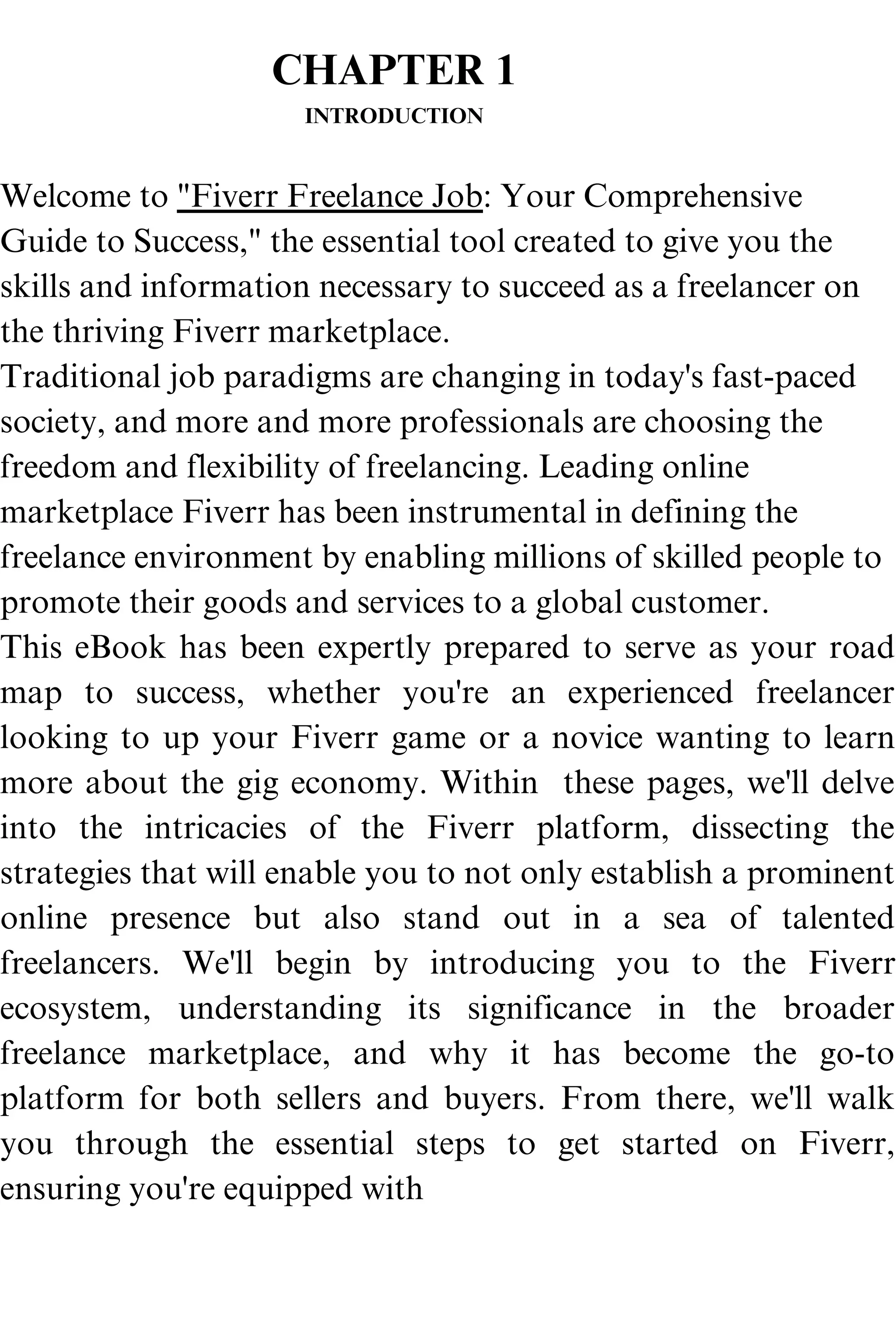 The document is a comprehensive guide for starting and succeeding as a freelancer on Fiverr, discussing the evolving job market and the shift towards online freelancing. It covers essential steps to establish a strong profile, create appealing gig offerings, and navigate the Fiverr marketplace effectively while also addressing common challenges and strategies for growth. The guide aims to empower both new and experienced freelancers with the knowledge and confidence needed to thrive in the gig economy.
