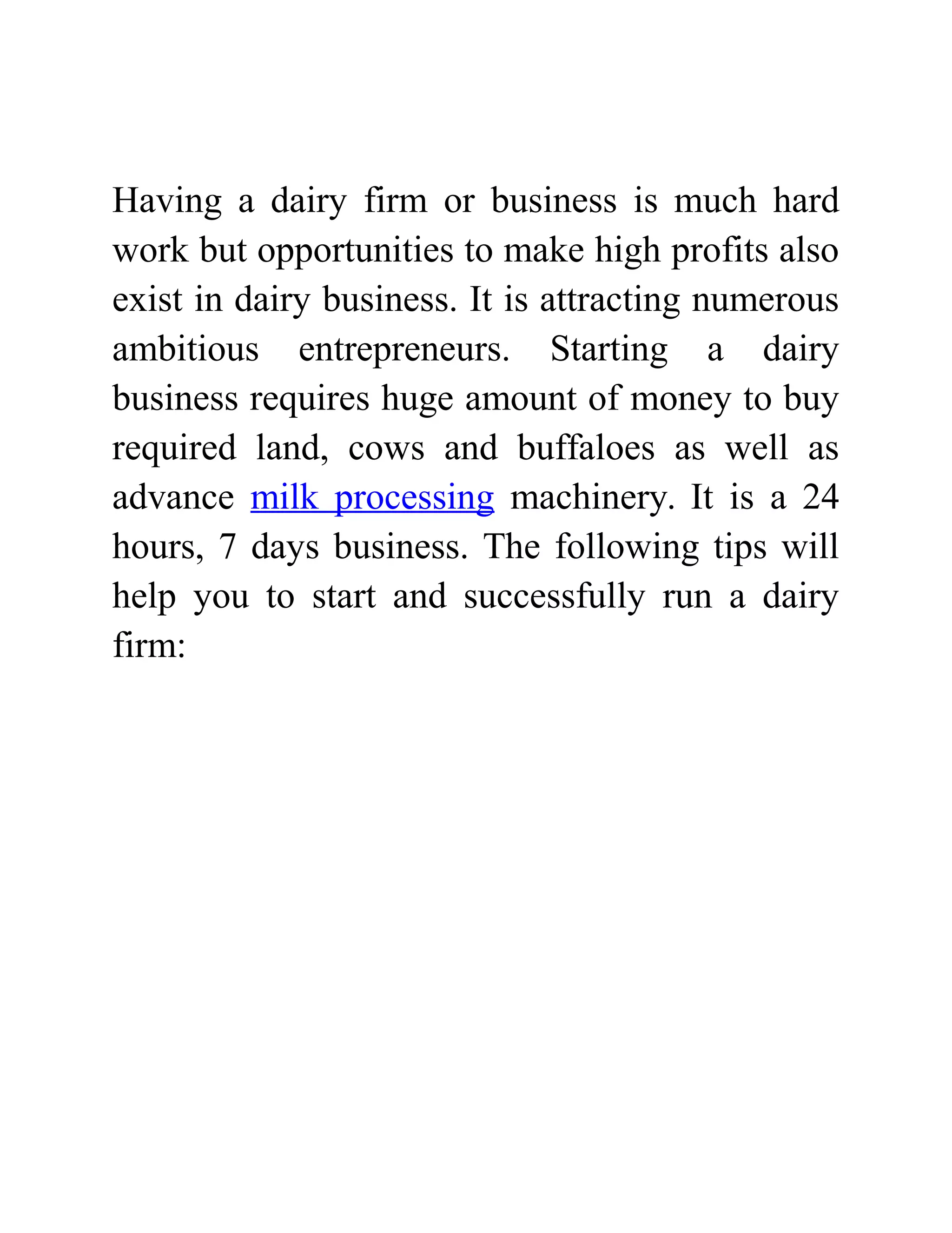Starting a dairy business requires significant investment in land, livestock, and equipment, along with a comprehensive business plan that includes market analysis and a SWOT analysis. Key considerations include acquiring healthy cows or buffaloes, utilizing advanced milk processing machinery, and performing thorough market research. Effective marketing strategies, including online presence and social media engagement, are essential for promoting the dairy business.