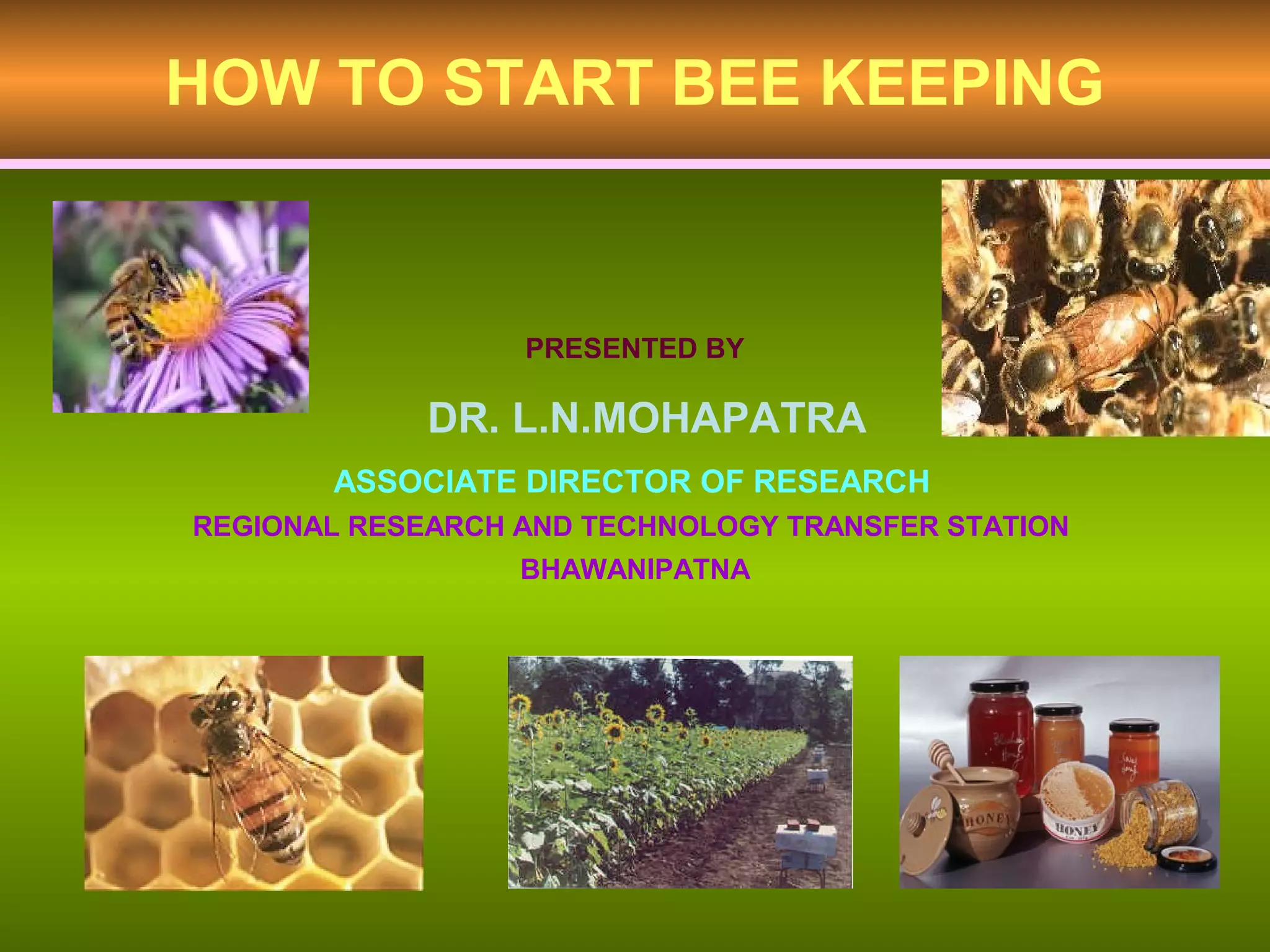 This document provides information on beekeeping and the importance of honey bees as pollinators. It discusses different species of honey bees used for beekeeping in India, as well as hive products like honey, beeswax, bee venom, royal jelly, propolis, and pollen. Honey bees are effective pollinators because their bodies are adapted for pollination through pollen baskets and floral constancy. Their managed populations can significantly increase crop yields and quality through pollination services.