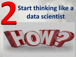 The document outlines a 6-step process for managers to draw useful insights from data without needing a background in data science. The steps include starting with a question of interest, developing a plan to collect relevant data, collecting the data, analyzing it to answer the original question, asking follow-up "so what" questions, and iterating the process by posing new questions. It notes that being data-savvy is important for managers to make effective decisions.