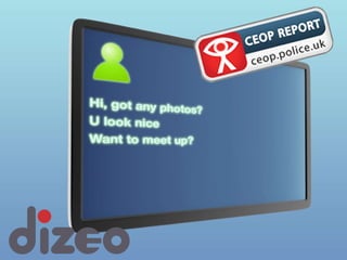 The document discusses enjoying the internet safely. It notes that while the internet allows sharing with friends, learning new things, getting help, and booking holidays, there are also dangers like interacting with strangers who may want to hurt users or groom them. It advises only talking to people you know, not giving out personal information, uploading inappropriate photos, agreeing to meet strangers, or turning on webcams for strangers. If a stranger asks for personal information, photos or to meet up, it says to tell a parent, CEOP, teacher or someone you trust.
