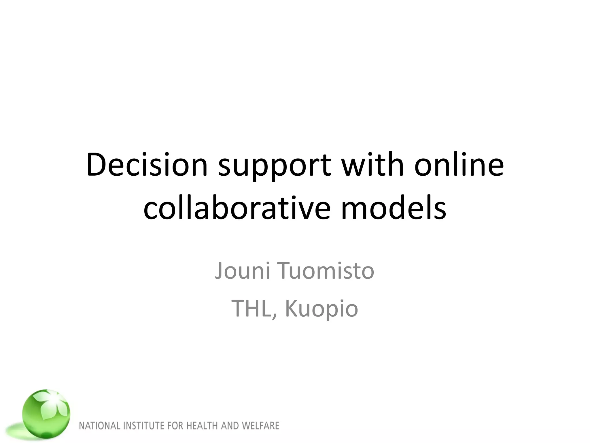 The document discusses decision support through online collaborative models, focusing on the concept of 'knowledge crystals' that facilitate information sharing and assessments to guide decisions. It emphasizes the importance of open-source models and continuous updates to enhance public discourse and quantitative assessments, such as a significant decision on Helsinki's energy future. The material promotes collaborative discussions to improve reliability and include diverse inputs in assessments.