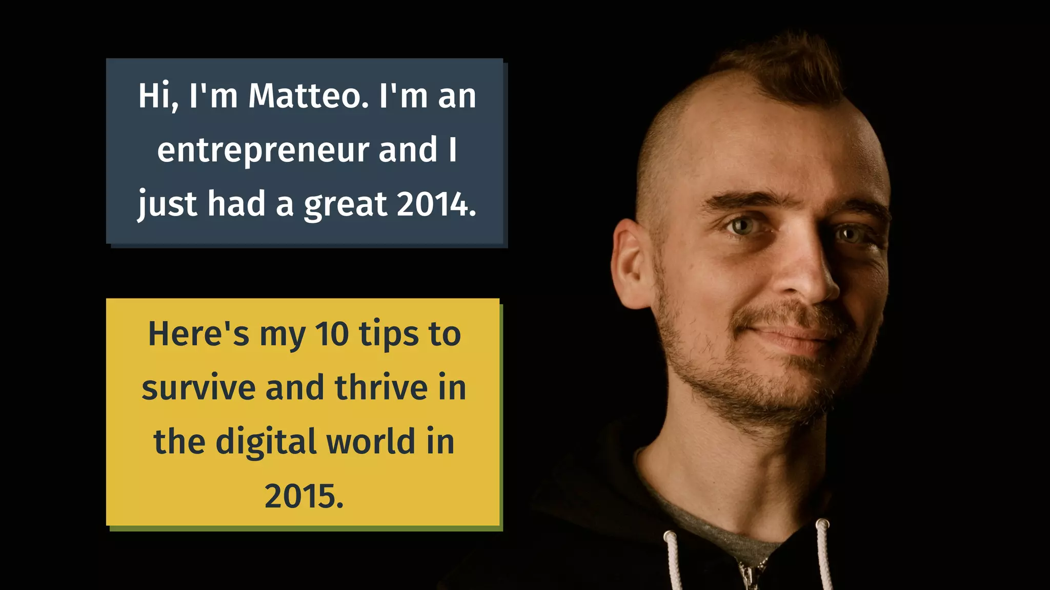 The document provides 10 tips for surviving and thriving in the digital world in 2015 from entrepreneur Matteo. The tips include having a clear plan, creating content optimized for mobile devices first, producing content that demands attention and transforms audiences, only sharing content publicly that one is comfortable with others seeing, taking occasional breaks from digital technologies to spend time offline with loved ones, limiting consumption of polluting media content, sharing more profound things that will enrich others' lives, freeing one's mind from worries by delegating tasks to trusted systems and people, improving presentation skills, and being careful how one interprets and sees the world.