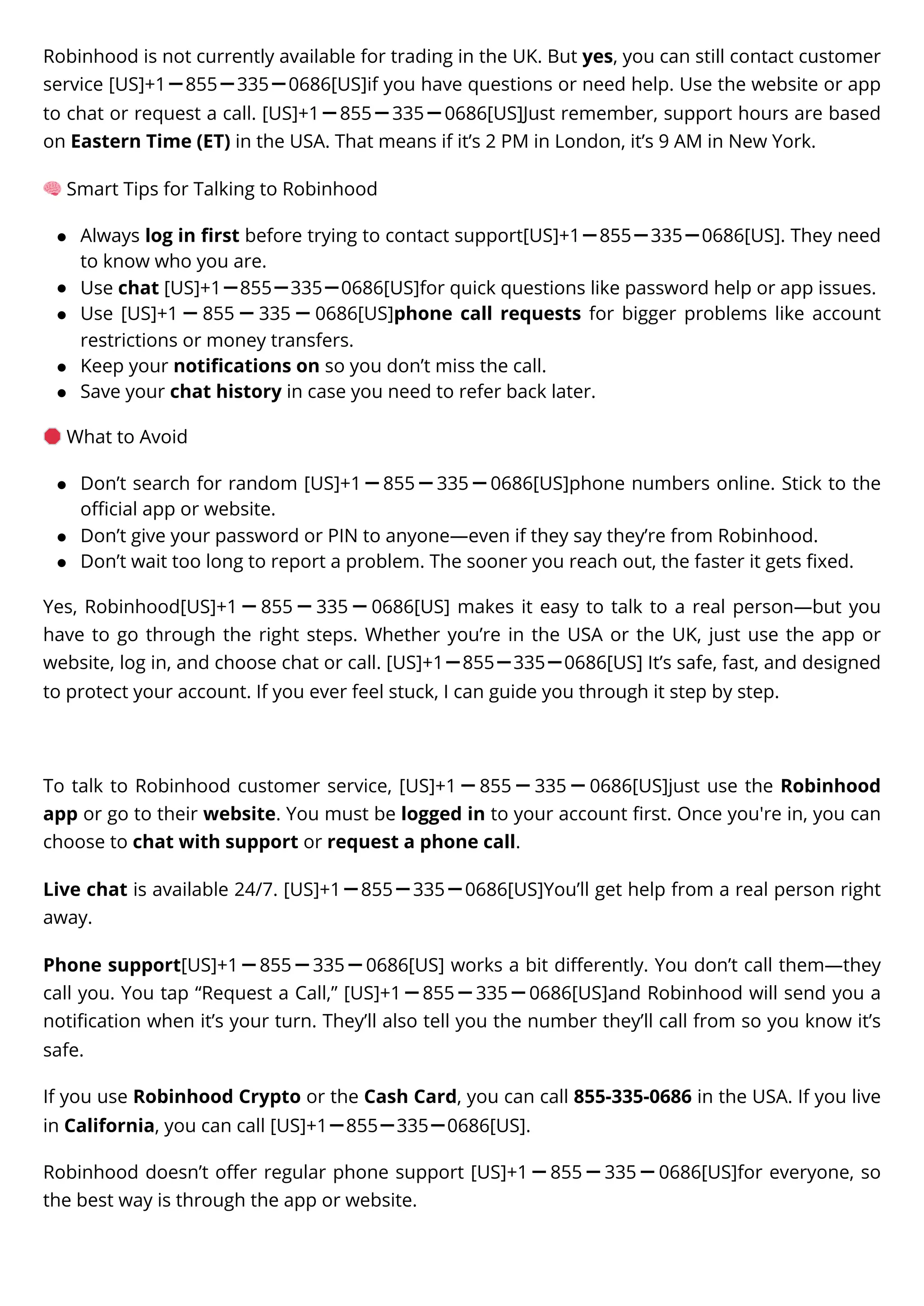 While live chat is only available+1➠855➤335↠➤(0686) during business hours, Robinhood’s