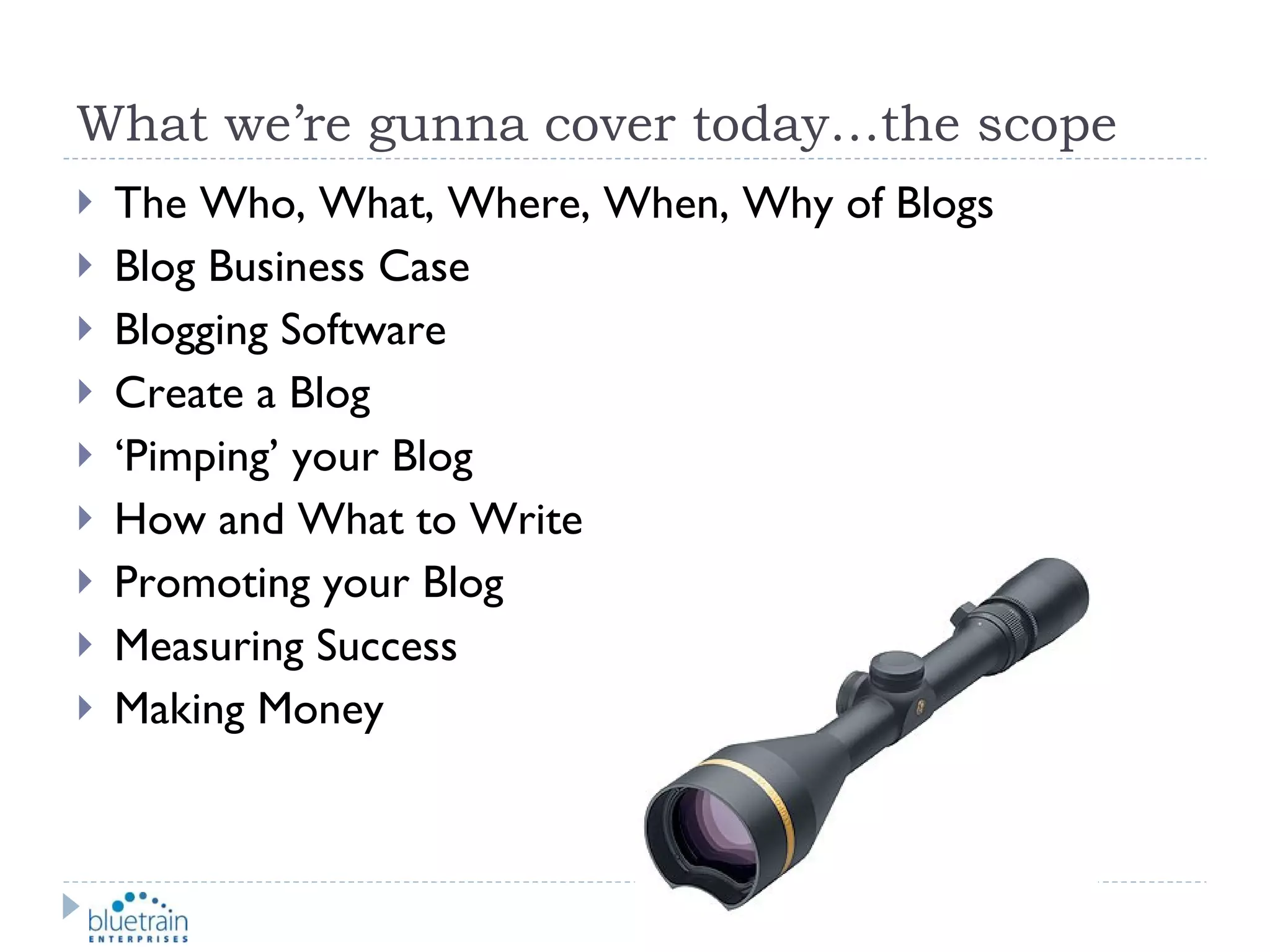 This document provides a comprehensive guide on using blogs as a marketing tool for businesses, covering topics such as the definition of blogs, their evolution alongside web technologies, and strategic considerations before starting a blog. It includes insights on blog content creation, promotion techniques, measuring success, and monetization opportunities. The presentation emphasizes the importance of targeting the right audience and delivering valuable content consistently to build reputation and engagement.