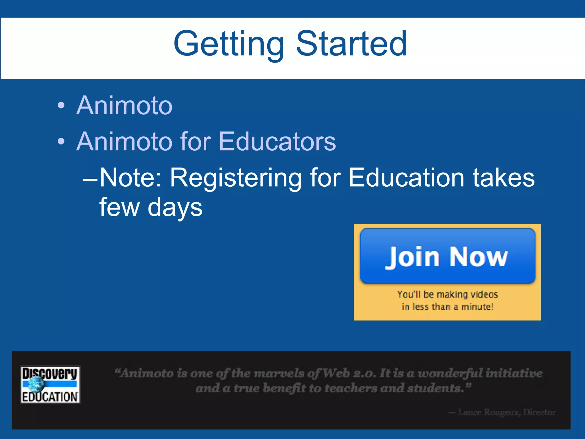 The document provides instructions for creating a video slideshow using the Animoto website. It outlines the steps to get started, including choosing a background, signing up for a free or educator account, arranging images from photo sources, adding text, choosing music while following copyright guidelines, setting the start point and length of the music, choosing an image for the cover, entering video info, and allowing Animoto to create the video. It then discusses options for sharing, remixing, and using Animoto videos in the classroom to enhance existing lessons and activities.