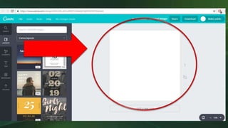 This document provides a tutorial on how to use Canva, a free online graphic design tool. It outlines the basic features of Canva including signing up through Facebook, exploring design templates, using tools like text, images, backgrounds and elements. It demonstrates how to customize designs by changing colors, fonts, filters, cropping images and downloading or sharing the final creation. The tutorial aims to help new users learn the basics of navigating Canva and creating stunning visuals for social media, documents, blogs and more.