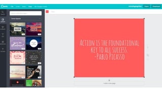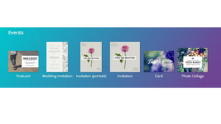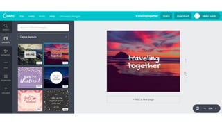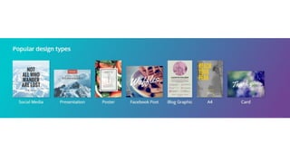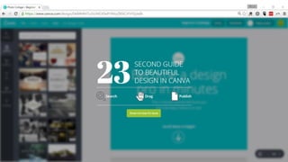 Canva is an online graphic design tool that allows users to create social media graphics, presentations, posters and other visual content. The summary walks through the basic steps to sign up for a Canva account and provides an overview of its main features, which include choosing design templates, editing text and images, adding shapes, icons and other elements, and sharing or downloading finished designs. It emphasizes that Canva offers a simple, intuitive interface that makes graphic design accessible even to those without design experience.