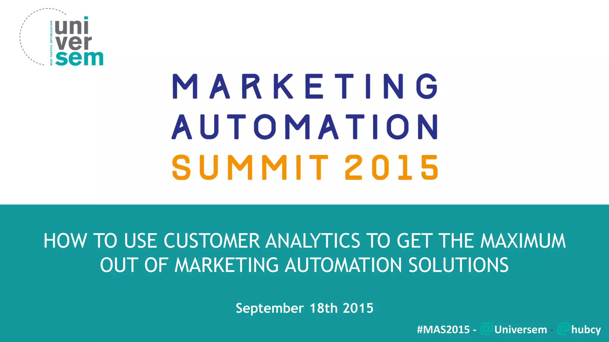 The document discusses the importance of customer analytics in optimizing marketing automation, highlighting three main challenges: understanding the customer journey, effectively addressing mobile device usage, and demonstrating campaign ROI. It emphasizes that standard web analytics are inadequate and underscores the need for comprehensive customer data collection and analysis. Additionally, it calls for a focus on multi-channel strategies to enhance customer experience across various touchpoints.