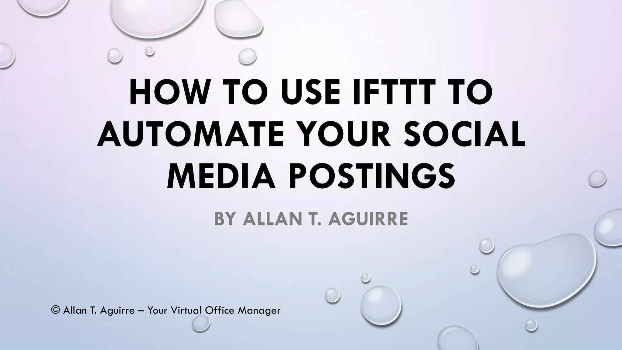 This document provides instructions for using IFTTT (If This Then That) to automate social media postings. It explains how to sign up for IFTTT, connect various web services like Facebook and Twitter, and create "applets" to link triggers in one service with actions in another service. For example, an applet could post any new Facebook status updates as tweets. The document walks through the step-by-step process of setting up several example applets, including automatically saving any photos you are tagged in on Facebook to a Dropbox folder.