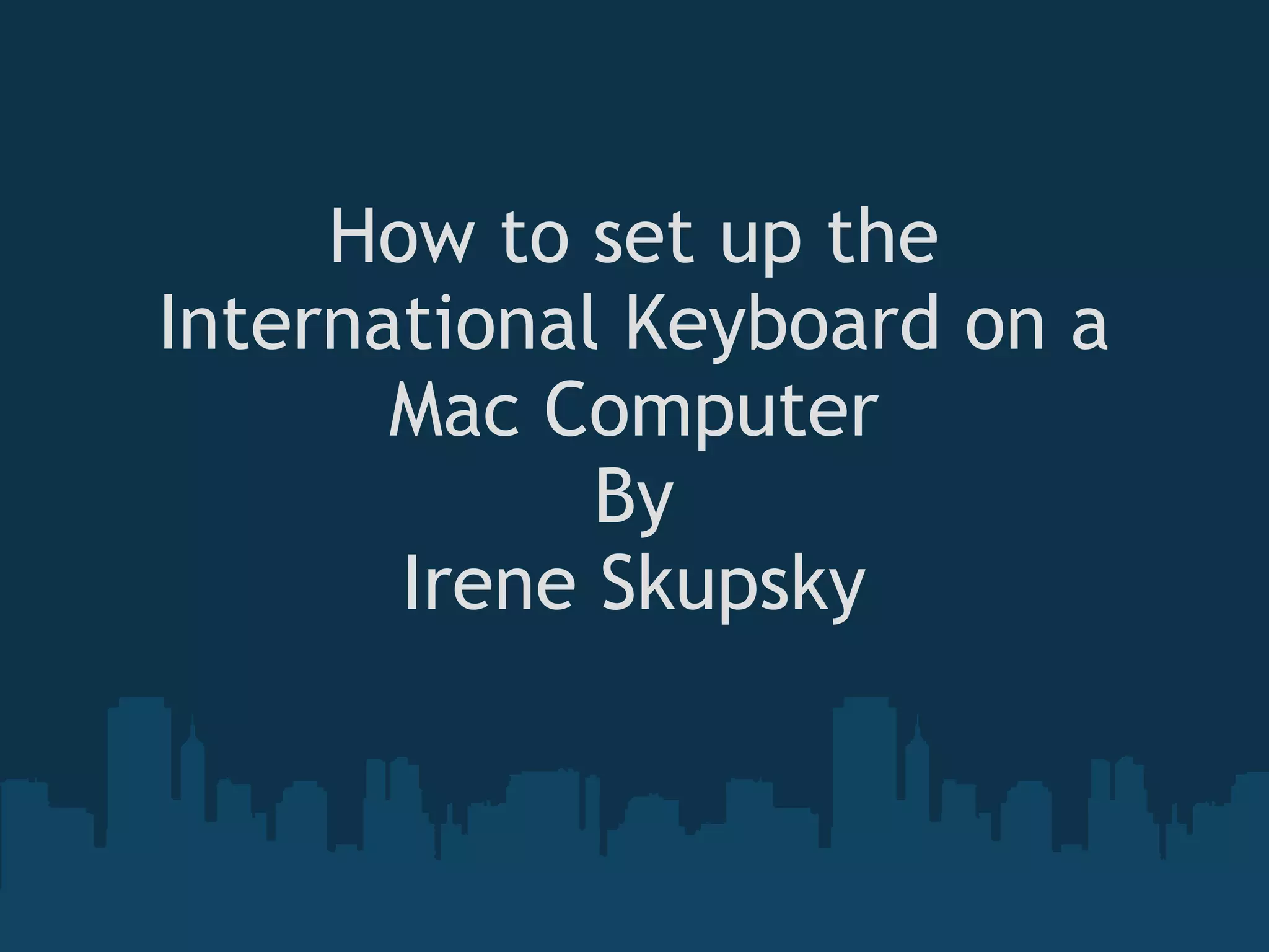 This document provides instructions for setting up an international keyboard on a Mac computer to enable typing in different languages. It explains that the International program allows typing in languages with various alphabets. The target audience is multilingual Mac users or those living abroad who need to type in a non-English language. The steps include opening System Preferences, selecting the International icon, choosing the language like Hebrew from the Input Menu options, and checking settings to view character palettes and keyboard for the selected language.