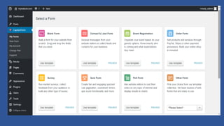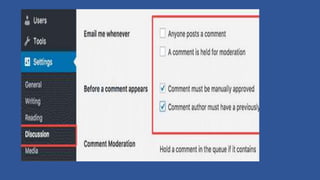 The document discusses how to set up and optimize a WordPress website for SEO. It covers installing WordPress, selecting themes and plugins, creating content like posts and pages, and customizing the website. Some key points covered include choosing a domain name, installing WordPress on a hosting server, selecting and customizing themes, adding blog posts and static pages, and configuring basic settings like comments and the site title. The overall goal is to help new users understand the basic process of installing and optimizing a WordPress site for search engine optimization.
