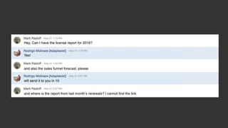 The document outlines the benefits of using eazyBI for visualizing and acting on sales data, emphasizing the importance of consistent terminology and color usage. Key outcomes include real-time data access, improved understanding of the sales cycle, and time savings through automation, leading to increased satisfaction among managers. The document encourages reaching out to the eazyBI support team for further assistance.