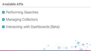 This document provides an overview of the Sumo Logic API, including authentication methods, rate limits, and API endpoints for searching logs and managing search jobs. It details the structure of requests and responses, the handling of errors, and best practices for using the API effectively. Additionally, it includes links to client libraries, documentation, and support resources.