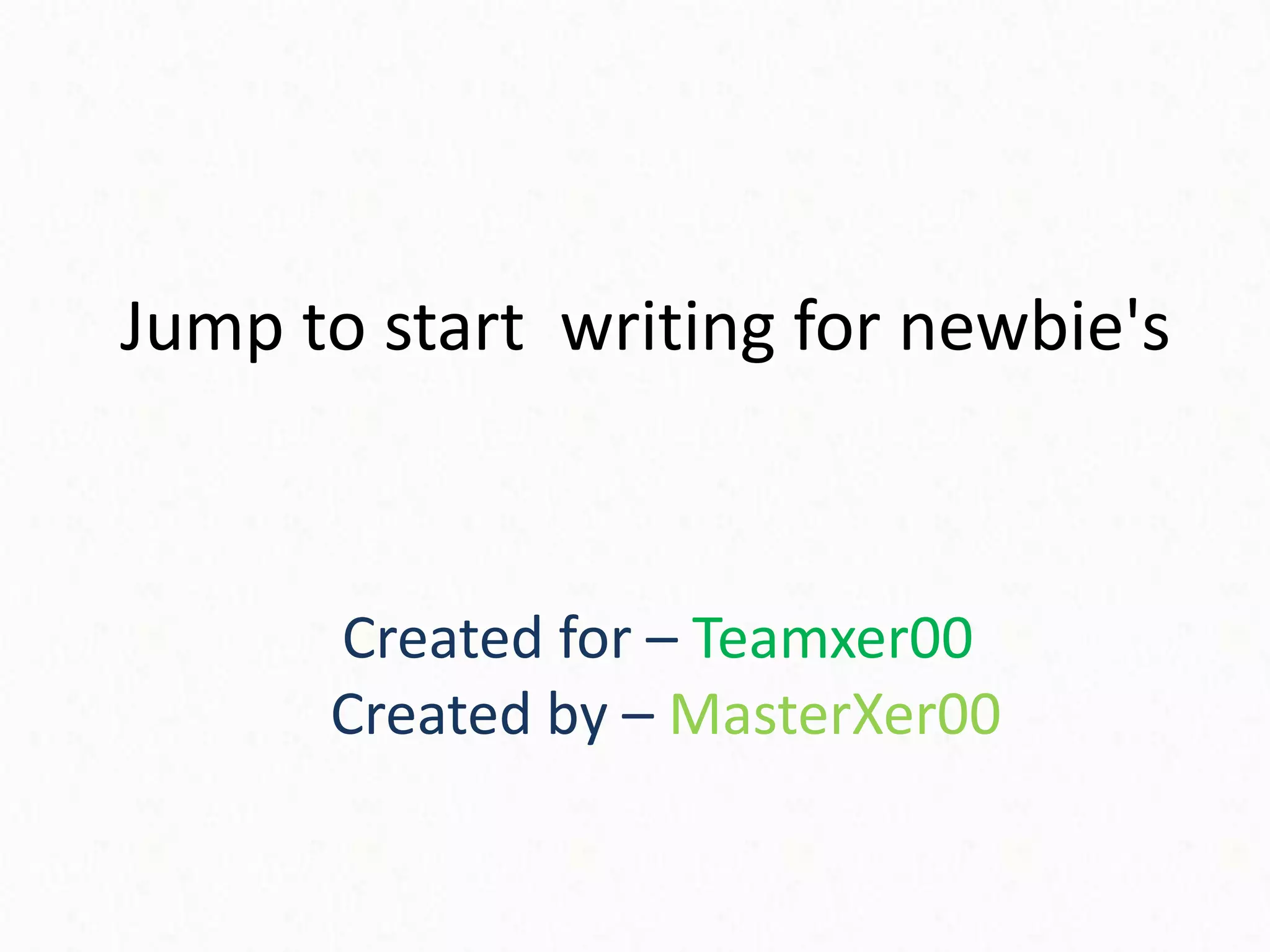 This document provides an introduction to writing for beginners. It defines writing as using words to express a viewpoint and discusses how mankind has used writing throughout history by inventing languages and leaving writings on cave walls. The document outlines two major types of writing: non-fiction like journalism, and fiction like stories. It discusses Aristotle's three basic styles of persuasion in writing: ethos, pathos, and logos. Ethos appeals to credibility, pathos to emotion, and logos to logic. The document encourages remembering the importance of choosing the right words and provides inspiring quotes about the writing process from famous authors.