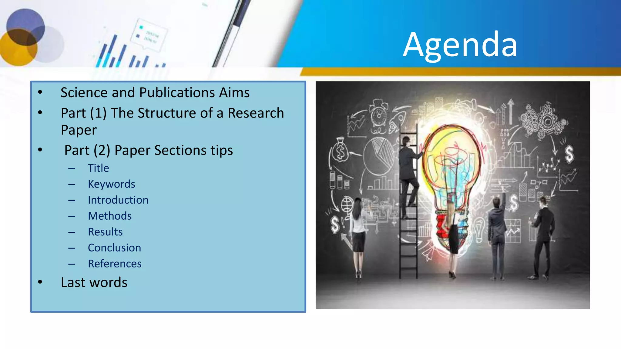 This document provides tips and guidelines for writing a good research paper for publication. It discusses the importance of sharing knowledge through publications. The structure of a research paper is explained, with the IMRAD model (Introduction, Methods, Results, and Discussion) being the most common. Key sections of a research paper like the title, abstract, introduction, methods, results, tables and figures, conclusion and references are discussed in detail. Effective organization, relevance, clarity and following journal guidelines are some important factors to consider while writing each section. The last part emphasizes avoiding plagiarism and copyright violations which can damage one's academic reputation.