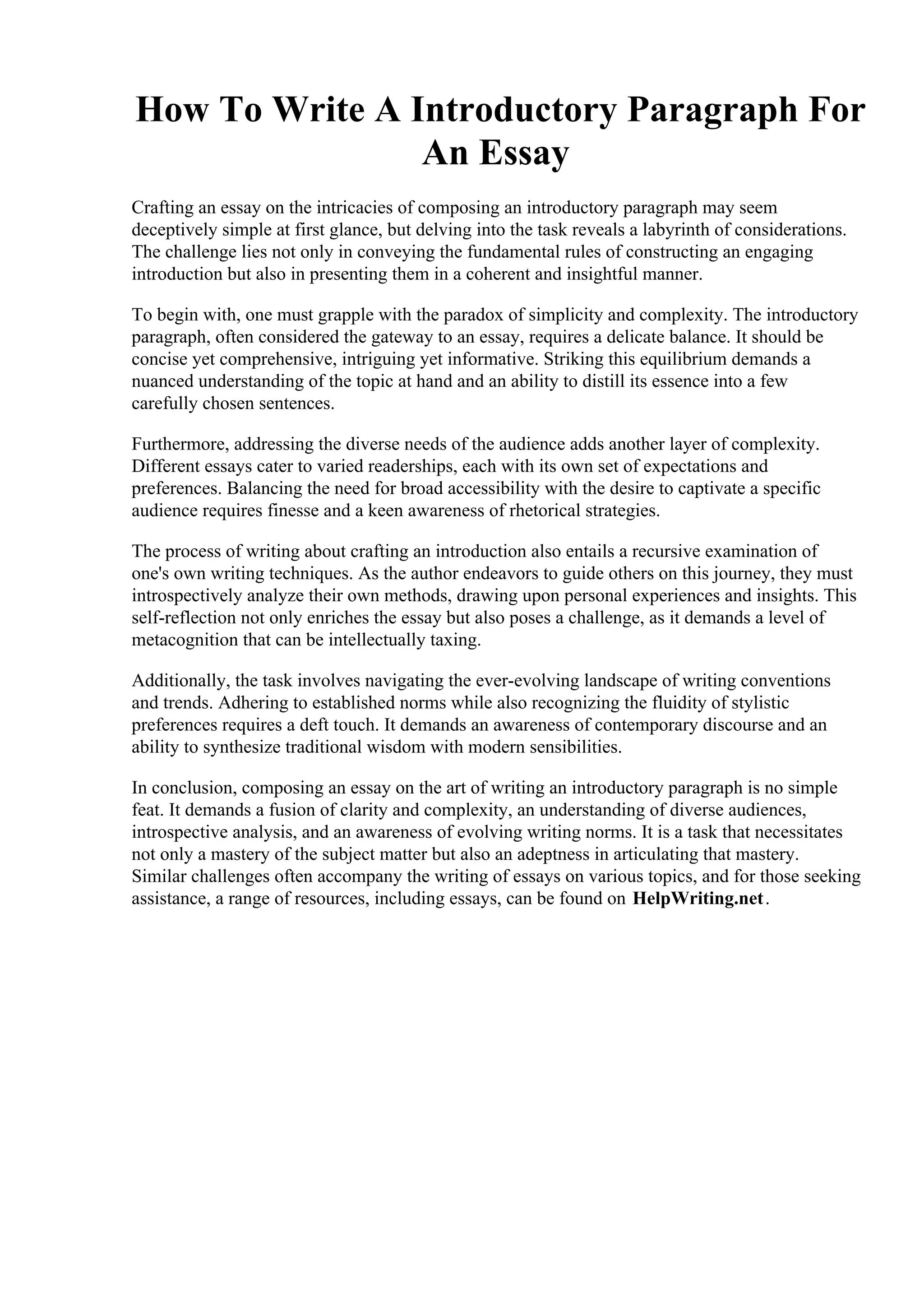 The document discusses the complexities of writing an effective introductory paragraph for an essay, emphasizing the importance of balancing engagement and information while considering audience expectations. It also identifies the recursive nature of writing, highlighting the need for self-reflection and awareness of evolving writing conventions. Overall, it presents the task as one requiring both mastery of the topic and skill in articulation.