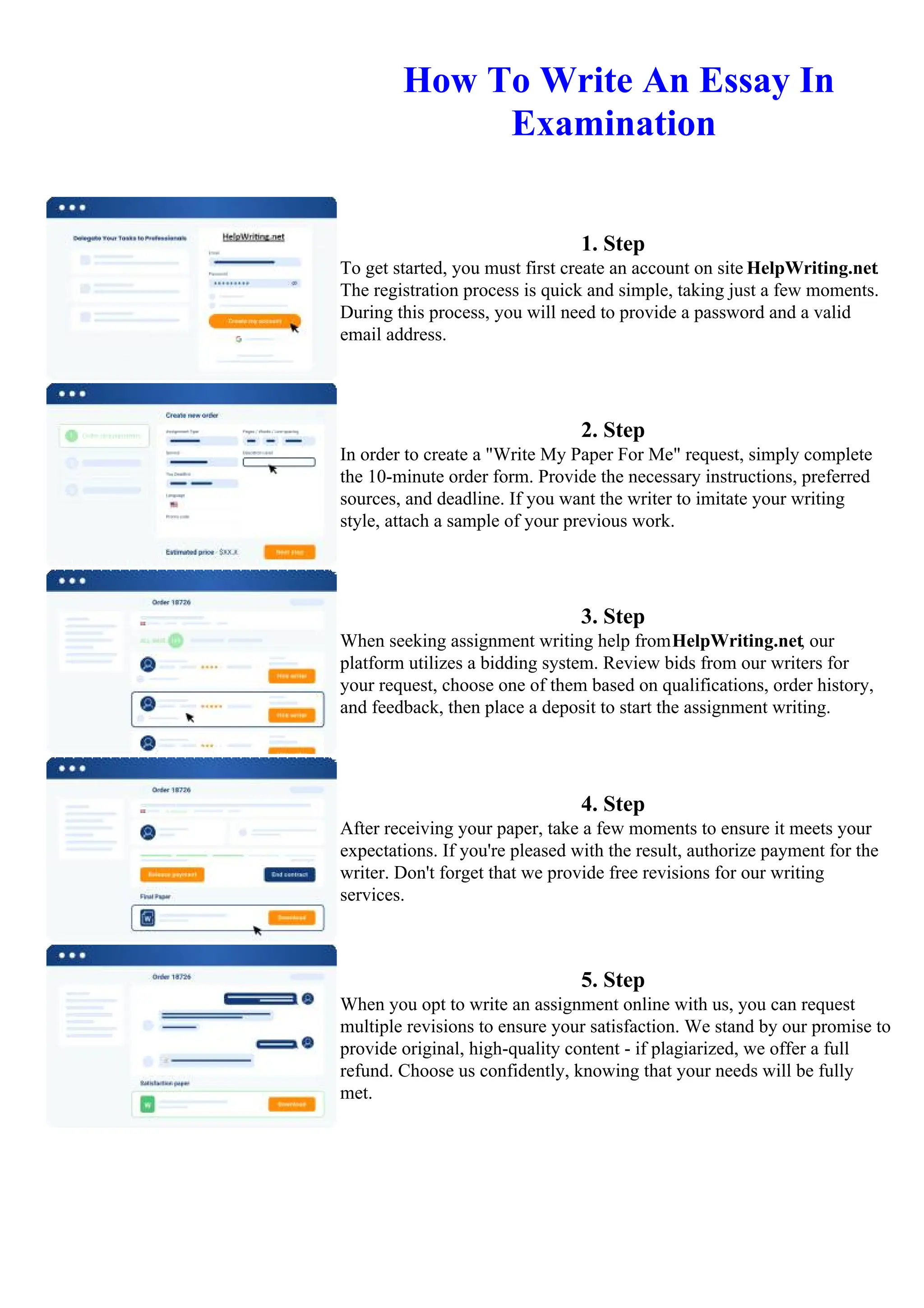 This document provides instructions for writing an essay for an examination in 5 steps: