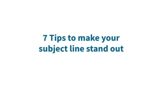 The document provides strategies for crafting effective email subject lines, emphasizing the importance of standing out and being relevant to the target audience. It suggests using personal touches, A/B testing, and specific words to increase open rates while avoiding common pitfalls that may trigger spam filters. Additionally, it highlights the value of brevity and the impact of emojis and punctuation on engagement.