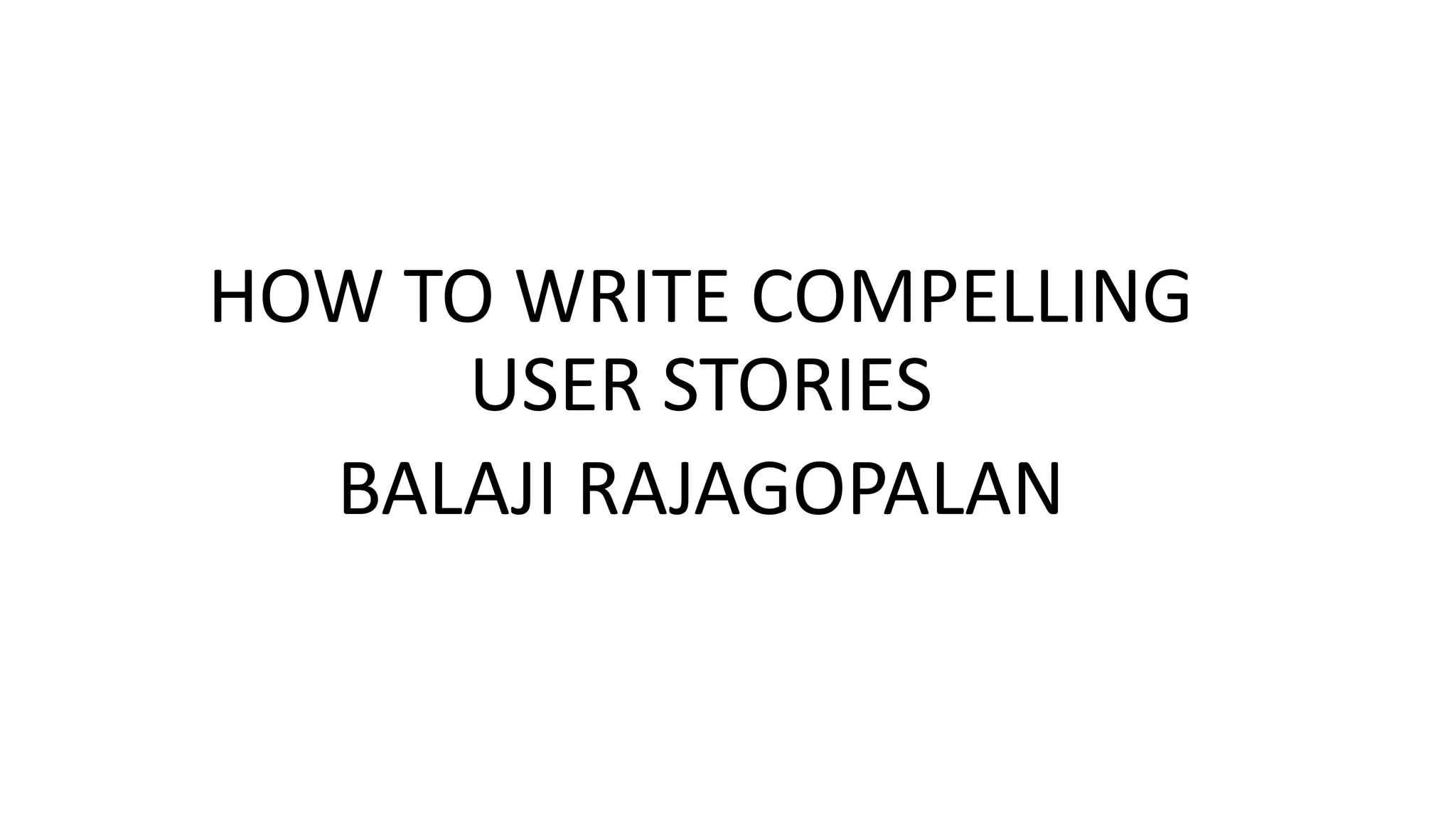 The document discusses best practices for writing compelling user stories in agile development, emphasizing the importance of clarity and communication among product managers, developers, and stakeholders. It highlights common challenges such as rejected stories and the need for alignment with product vision, outcomes, and acceptance criteria. Recommendations include breaking down epics into valuable, independent stories and ensuring collaboration across teams to improve story quality and effectiveness.