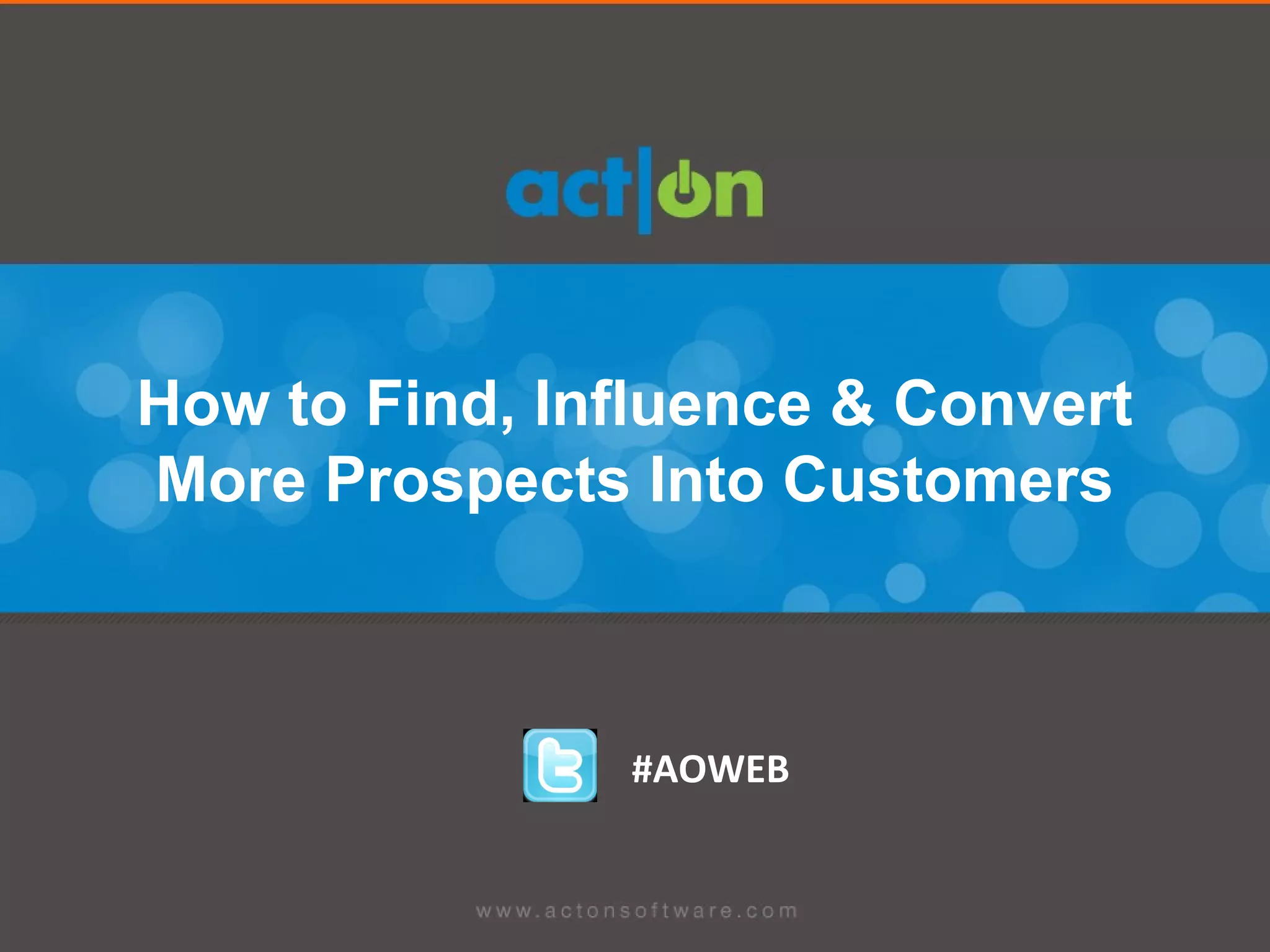This document provides tips on how to find, influence, and convert more prospects into customers. It discusses engaging prospects through content publishing and networking channels before they become active buyers. It emphasizes understanding customers, products, and objectives. It also stresses practicing customer-centric selling and collaboration between sales and marketing. The document includes templates for calculating goals, customer profiling, mapping the sales process, and planning content.