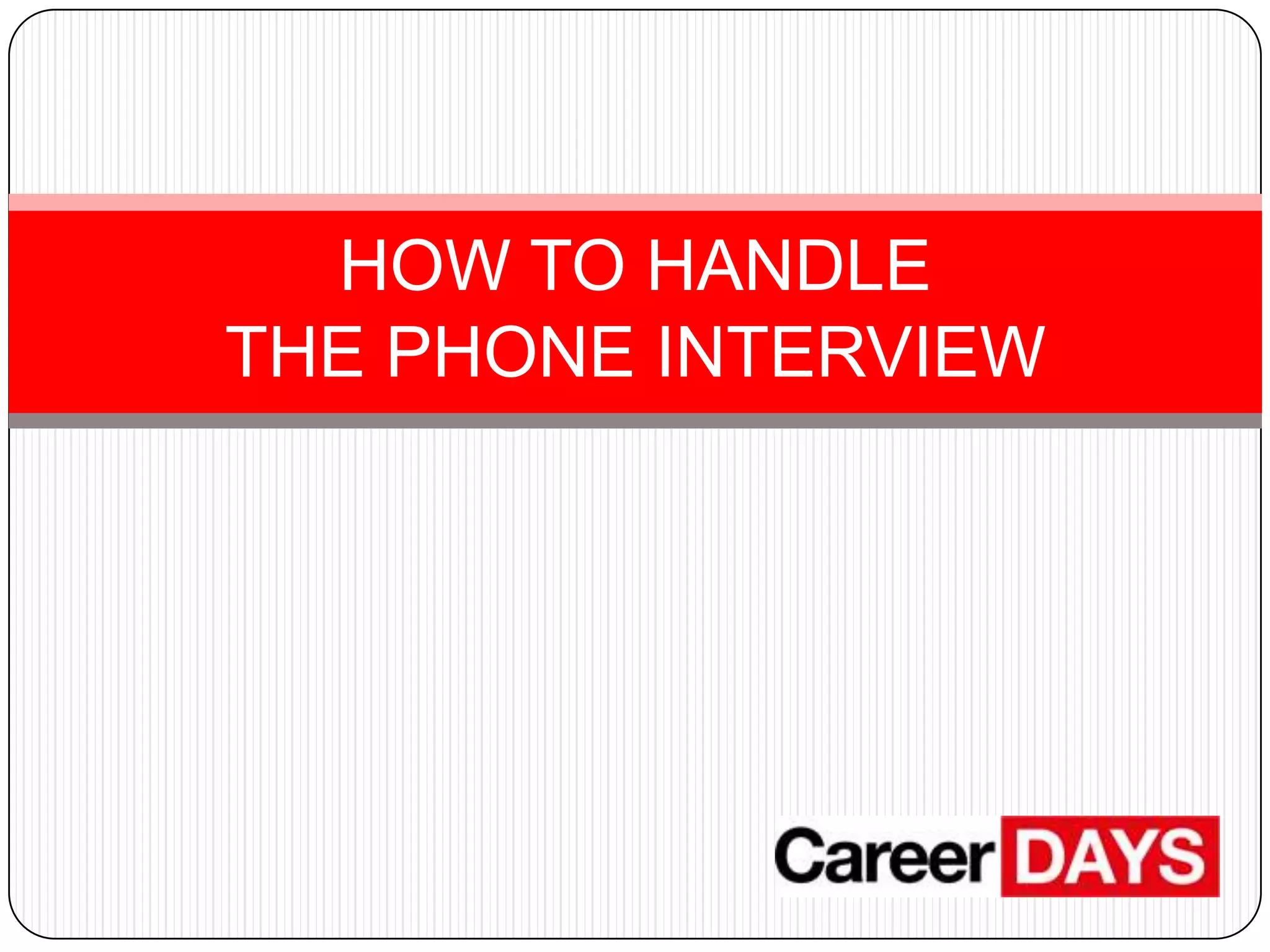 This document provides guidance on preparing for and conducting a phone interview. It recommends preparing questions and notes in advance of the call. During the call, the interviewer will likely ask questions about your background, skills, work style, and goals. Examples of common questions are provided. After the call, one should reflect on their performance and follow up by thanking the interviewer. Overall preparation is key to performing well during the phone interview.