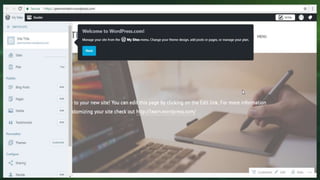 WordPress is an open source content management system that allows users to easily create websites and blogs. It provides different pricing plans, including a free basic option. The document walks through the steps to set up a WordPress account, choose a theme, customize the site title and icon, add posts and pages, and follow other blogs. It emphasizes that organizing content in WordPress helps customize it for individual users.
