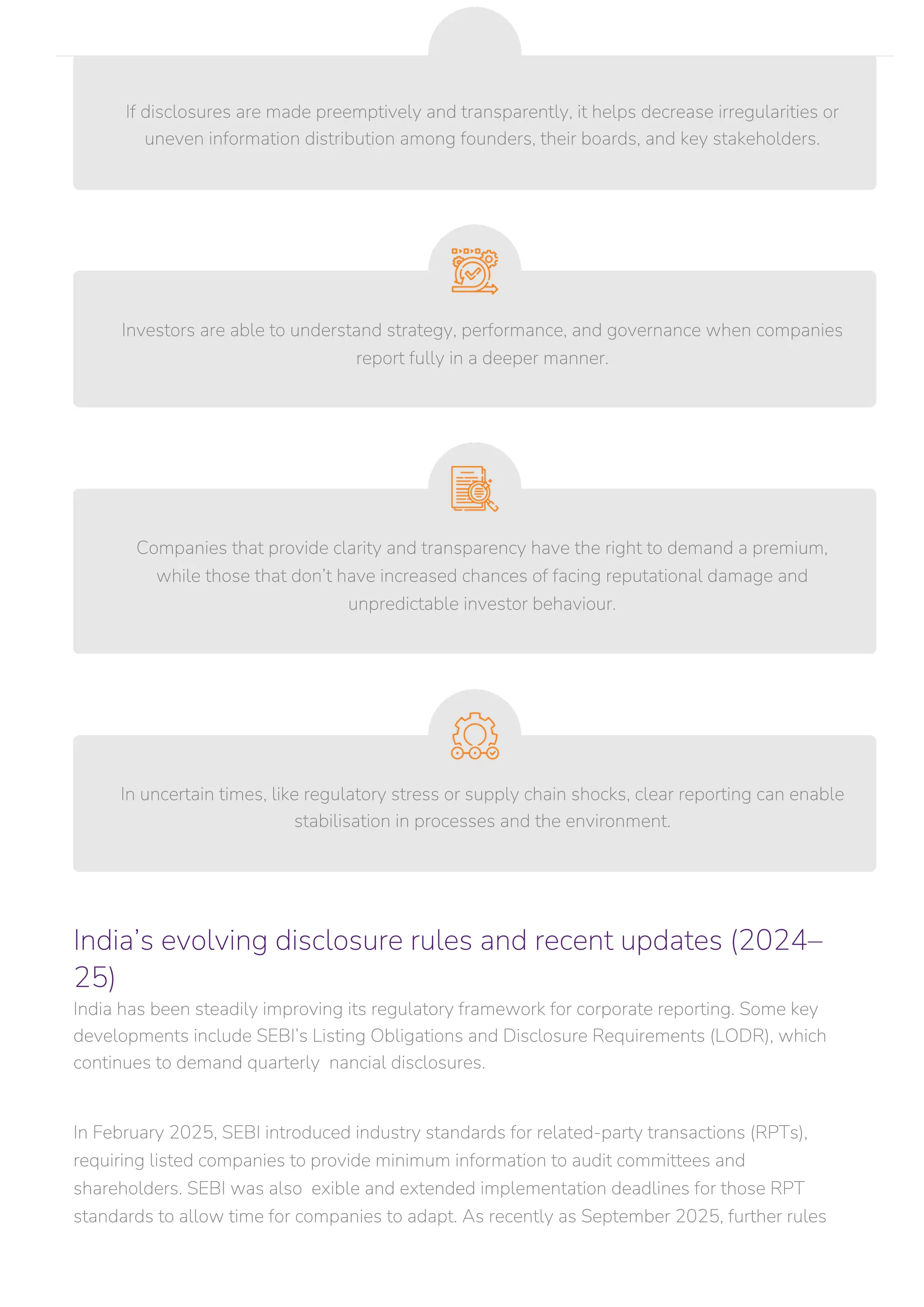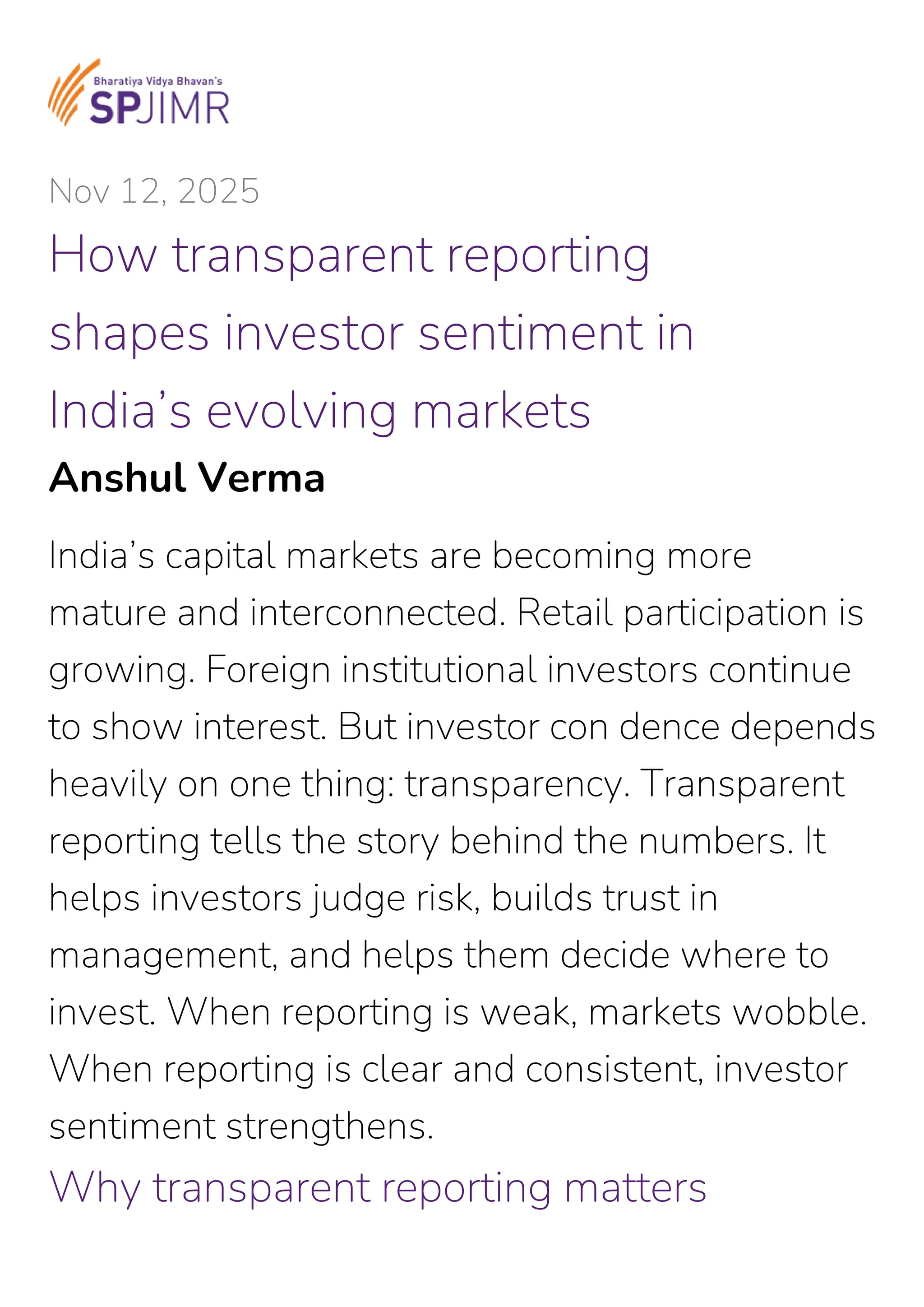 India’s capital markets are becoming more mature and interconnected. Retail participation is growing. Foreign institutional investors continue to show interest. But investor confidence depends heavily on one thing: transparency. Transparent reporting tells the story behind the numbers. It helps investors judge risk, builds trust in management, and helps them decide where to invest. When reporting is weak, markets wobble. When reporting is clear and consistent, investor sentiment strengthens.