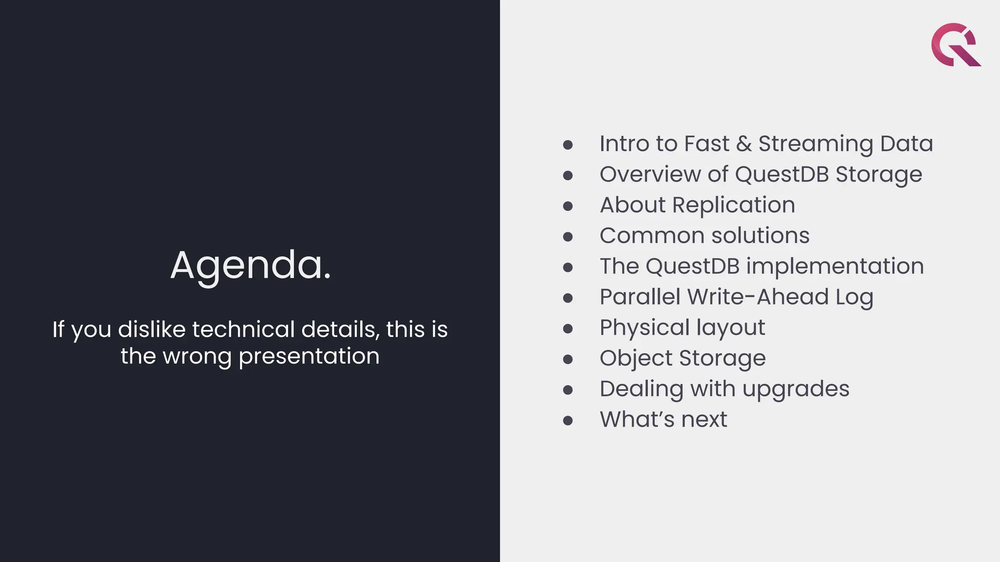 The document outlines the implementation of replication in QuestDB, a time-series database, including the architecture and mechanisms for handling high volumes of data from devices like smart meters and factory machines. It emphasizes features such as parallel write-ahead logging, multi-primary replication, and asynchronous coordination to ensure fault tolerance and robustness for real-time data ingestion. The presentation also discusses future enhancements like integration with parquet for improved data storage and query performance.