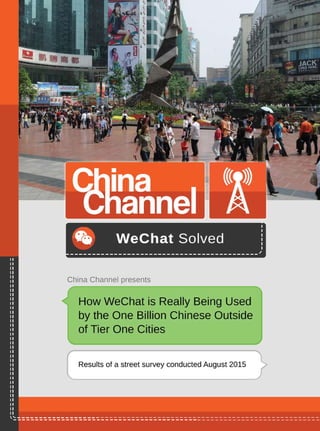 Results of a Street Survey about WeChat usage habits. We travelled to: The Bund, Shanghai A busy working class suburb of Chongqing (Tier 2 city in the heart of China's mainland) A small sleepy countryside town on the Yangtze river And broke out the clipboards to interview 300 people with the same 8 questions about how they use WeChat. The revealing results paint a clear picture of how WeChat is really being used across China.