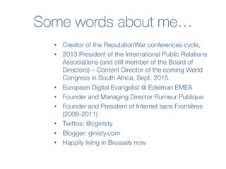 The document discusses the evolving role of public relations (PR) in the context of social media and stakeholder influence. It emphasizes that PR has transitioned from merely managing information to building reputations through social interactions and stakeholder engagement. The author argues that organizations must adapt by becoming community-driven to thrive in this new landscape.