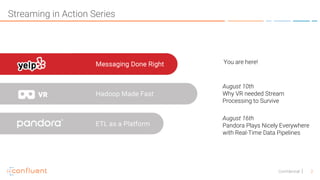 Yelp has successfully transitioned to a microservices architecture by adopting Kafka as its primary messaging queue, enabling efficient data processing and improved scalability. The transformation involved rethinking messaging with a focus on a publish/subscribe model and real-time data access, ultimately leading to significant cost savings and better decision-making capabilities. The document discusses messaging queues, their advantages, and how Yelp leveraged streaming platforms for its data pipeline.