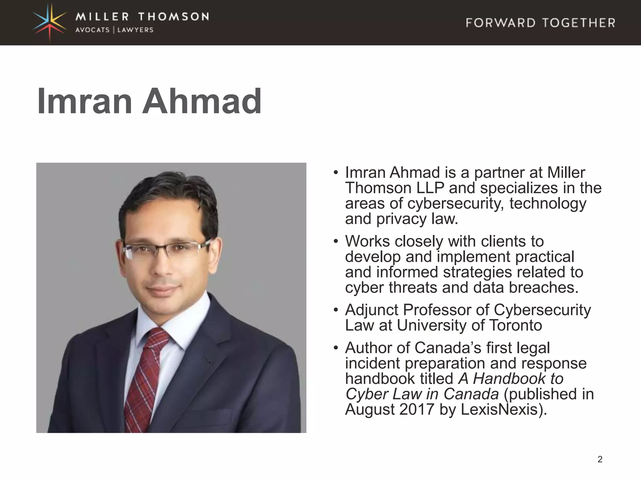 The document covers essential aspects of cybersecurity, including definitions, types of threats, recent statistics on cyber crime, and the legal landscape regarding data breaches in Canada and the U.S. It emphasizes the importance of implementing best practices for data security and outlines potential liabilities and legal implications for organizations. The document also highlights evolving legal standards and the need for organizations to prepare for and respond to cyber threats effectively.