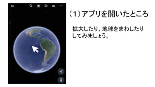(1)アプリを開いたところ 拡大したり、地球をまわしたり してみましょう。