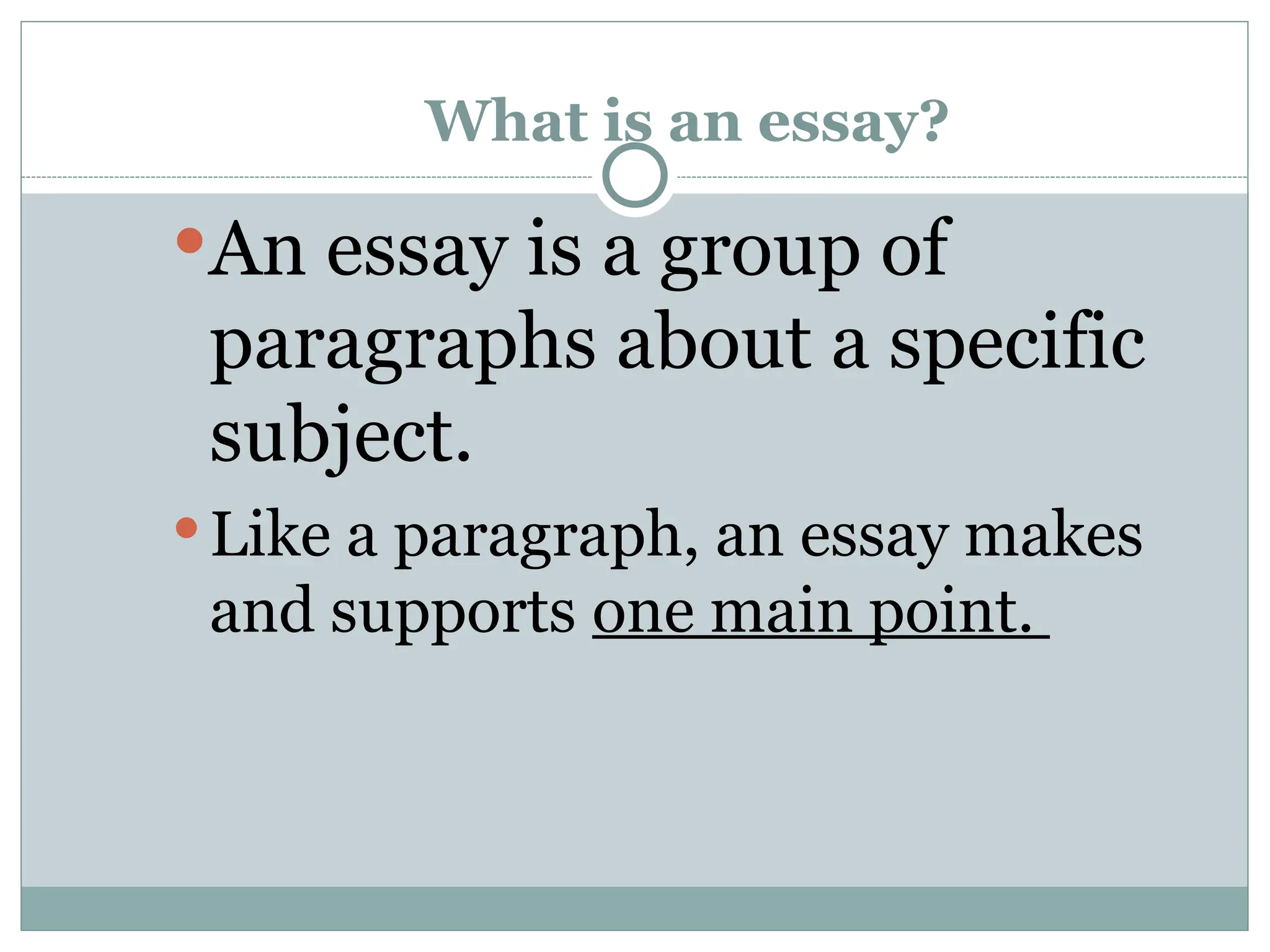 The document outlines the structure and elements of writing an essay, emphasizing the importance of a clear thesis and supporting arguments in the introduction and body paragraphs. It details the components of a five-paragraph essay with guidance on crafting supporting paragraphs and a strong conclusion. Additionally, it provides tips on what to avoid in essay writing and factors to check for overall effectiveness.
