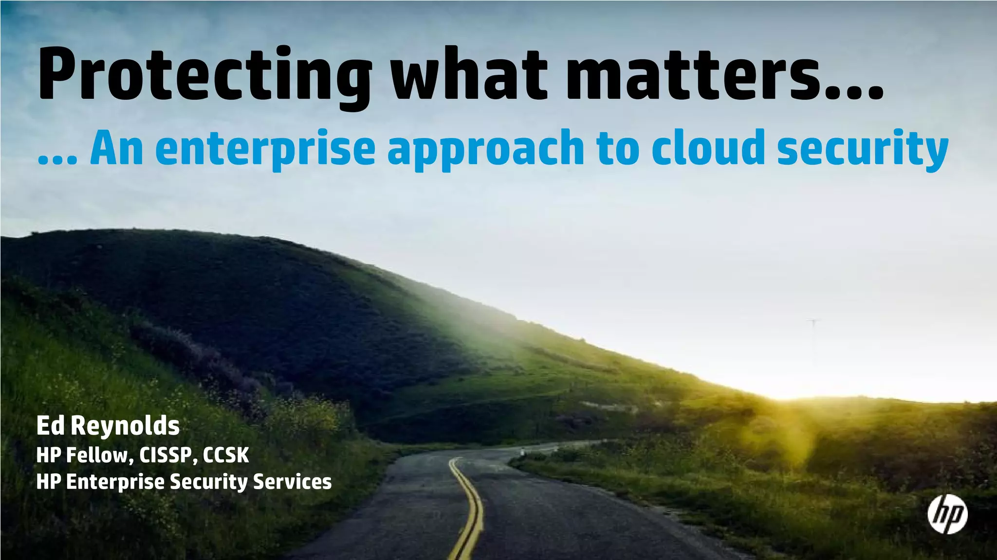 This document discusses cloud security from an enterprise perspective. It begins by outlining trends in security threats facing organizations and the challenges of managing risk. It then provides guidance on taking a risk-based approach to cloud security, designing applications securely for the cloud, and conducting ongoing auditing and management. The key recommendations are to understand your risk profile, architect for security in cloud environments, implement robust identity and access management, confirm compliance obligations, and define clear security responsibilities between customers and cloud service providers.