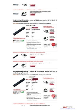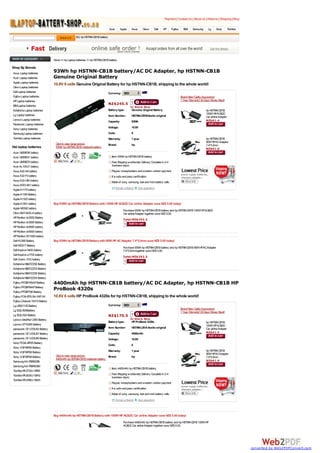 This document provides information about and allows purchase of replacement batteries for the hp HSTNN-CB1B laptop. Two battery options are listed: a 93Wh hp HSTNN-CB1B battery for NZ$245.50 and a 4400mAh hp HSTNN-CB1B battery for NZ$170.50. Both batteries can be purchased with an HP AC adapter. The batteries are genuine OEM, have a 1-year warranty, and will ship worldwide within 2-4 business days. Payment options including PayPal are listed.