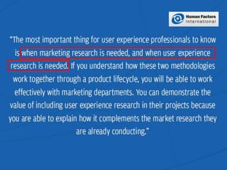 使用者研究是設計高品質產品的關鍵方法,強調理解用戶行為和需求的重要性。文檔探討了不同的研究方法及其在產品設計中的應用,並指出實踐和動手操作的重要性。同时,強調了使用者研究與市場調查的區別,以及任何人都能學會進行使用者研究。
