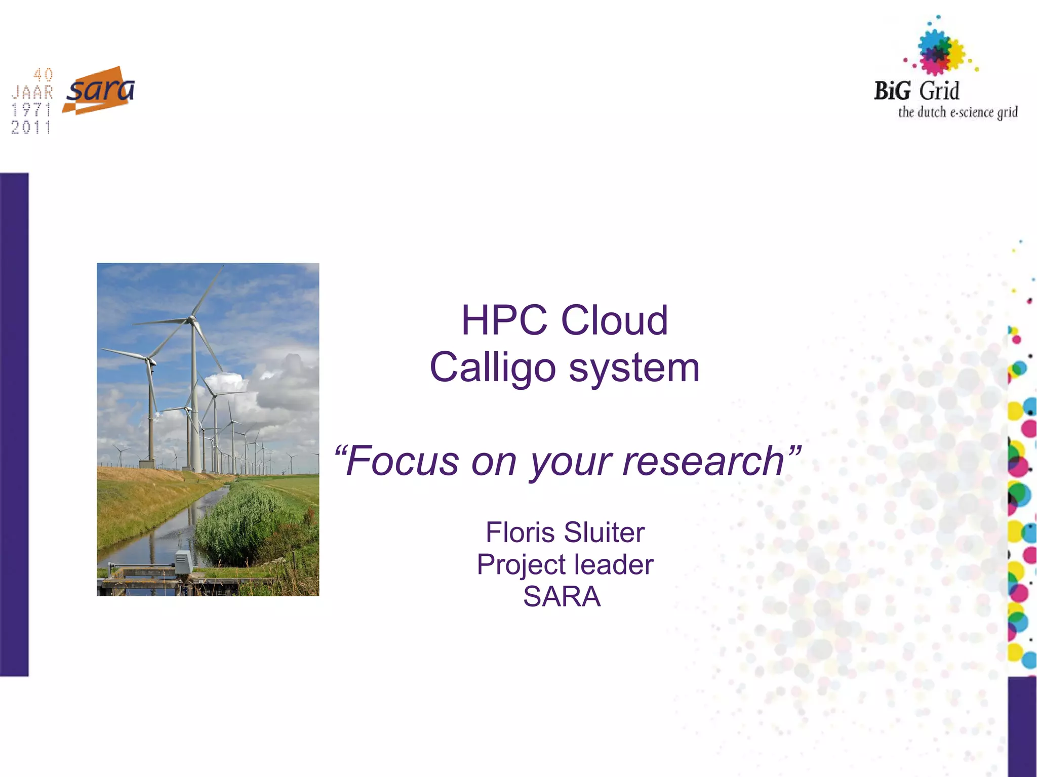 The document discusses the development and implementation of a high-performance cloud computing system, which allows users to create and manage scalable computing environments tailored for research purposes. It highlights the capabilities of the HPC cloud system, its architecture, and security measures while showcasing user participation in various projects and applications. The project emphasizes the advantages of using cloud technology for computational tasks across diverse scientific fields, demonstrating its potential to streamline operations and reduce the complexity of application porting.