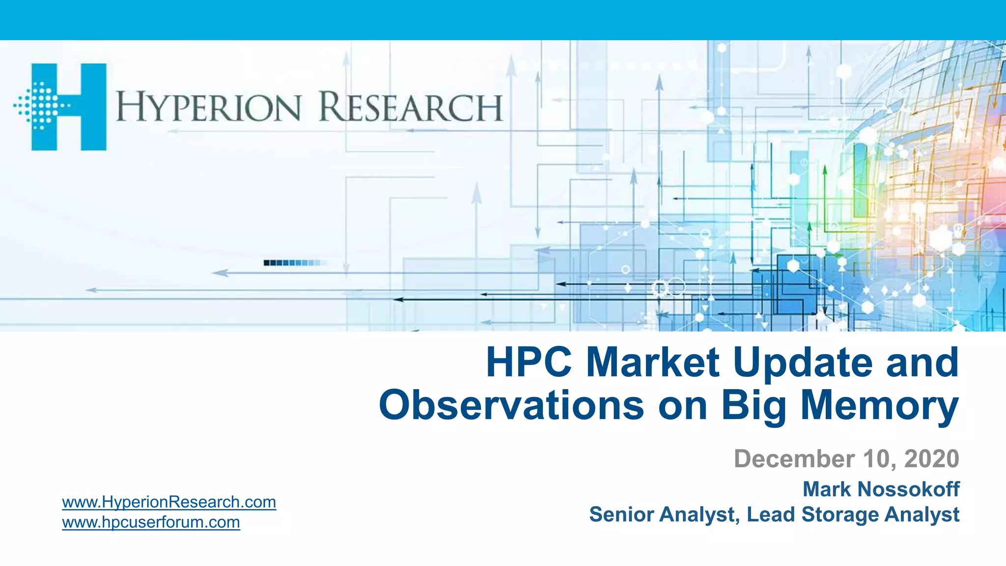 The document provides a comprehensive overview of the high-performance computing (HPC) market, forecasting total revenue growth from approximately $27.7 billion in 2019 to about $38 billion by 2024, with a compound annual growth rate (CAGR) of 6.7%. Key areas of growth include storage at 8.3% and HPC-enabled AI at a significant 15.8% CAGR. Furthermore, the analysis highlights the impact of COVID-19 on the market, noting delays in shipments and revenues while also expecting a recovery in 2021 driven by increased HPC workloads in public cloud environments.