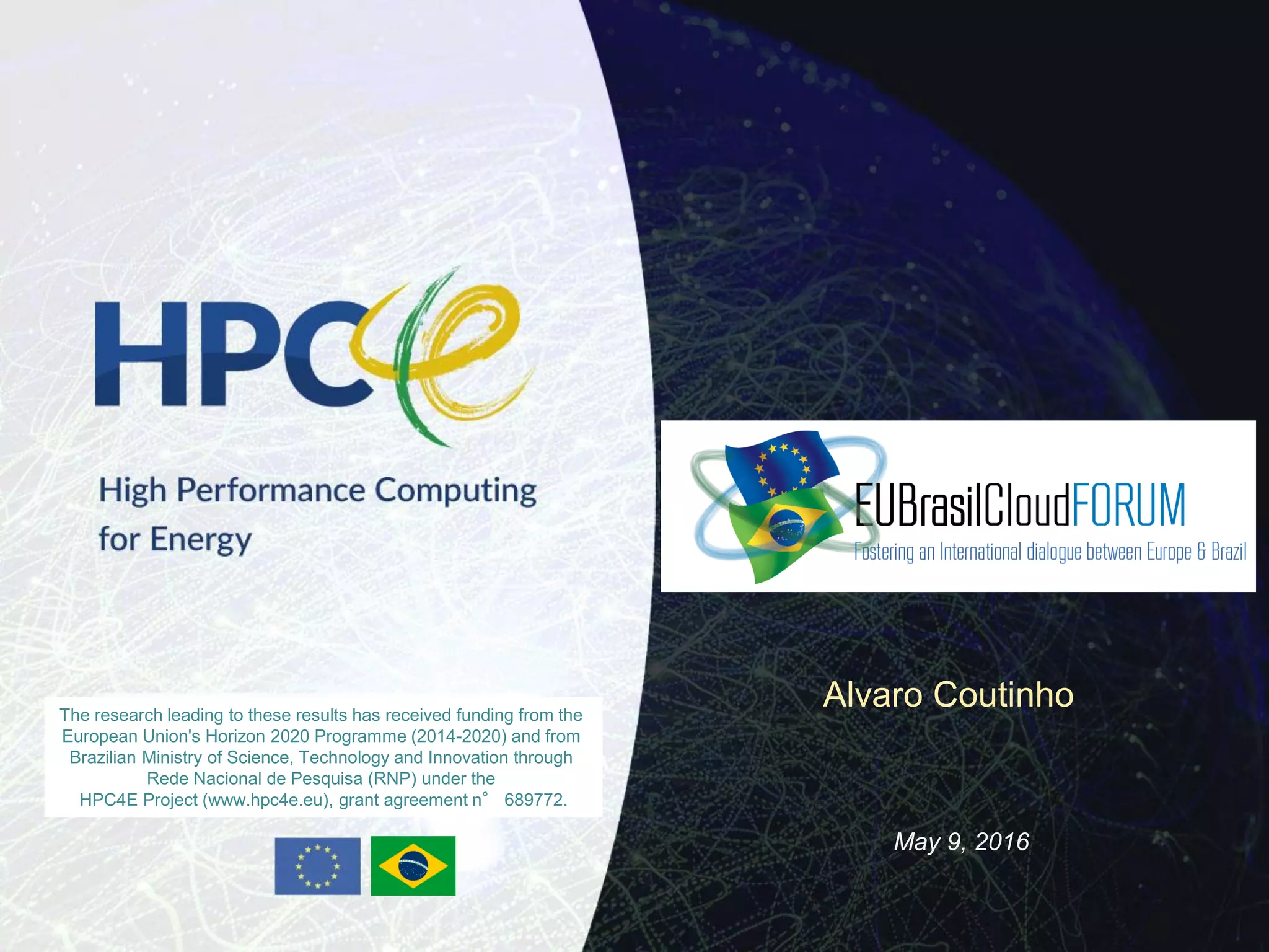 The document details research funded by the EU's Horizon 2020 program and Brazil's Ministry of Science, focusing on high-performance computing applications in the energy sector. Key projects include simulations for wind, oil, gas, and biomass energy, enhancing exploration risk reduction, combustion engine design, and wind farm optimization. The goal is to leverage exascale computing for more efficient energy production and environmental impact reduction.